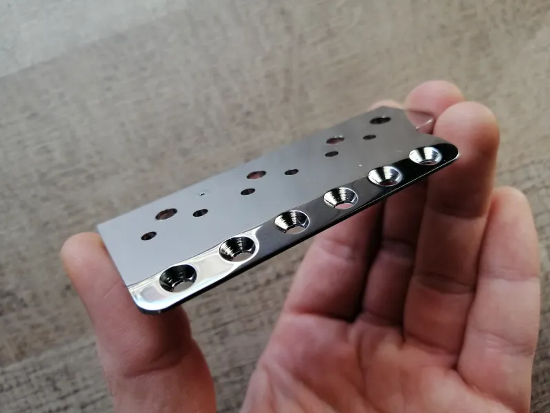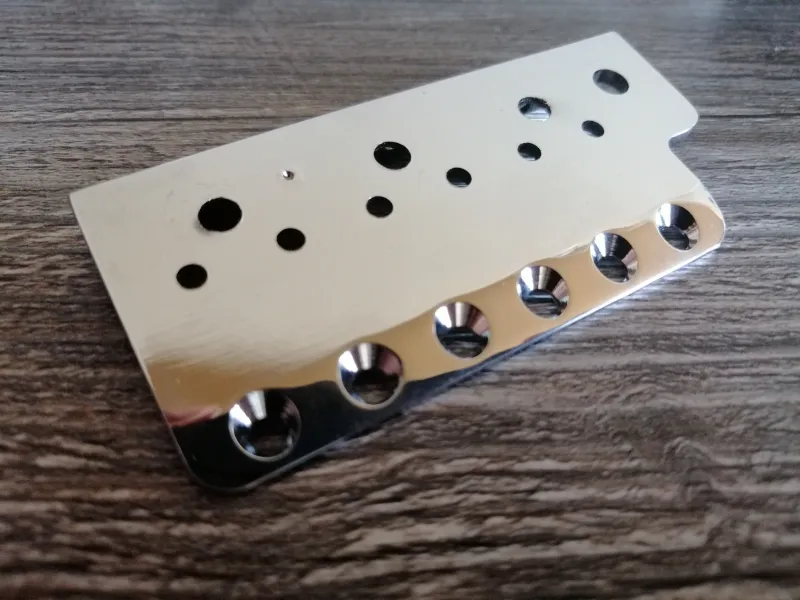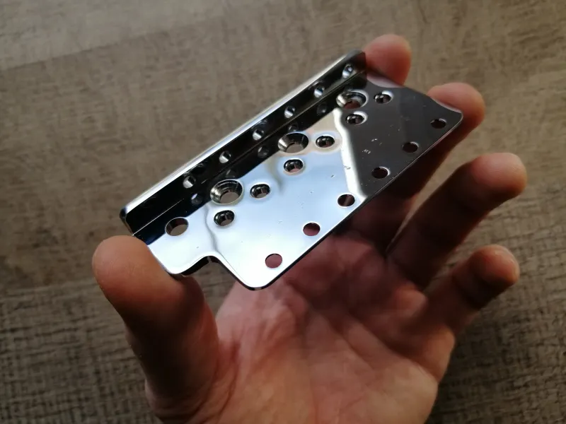 Eladó ez a kiváló minőségű, Amerikában, kézzel készült stratocaster hídlemez. A lemez Vintage gitárokhoz, 2 7/32˝ - os azaz 56.4mm E to e (2 ˝E˝ húr közti teljes távolság) húrtávolsággal rendelkező gitárokhoz való. Kínai, mexikói, koreai valamint más után gyártott modellekhez tehát nem lesz jó a mérete, csak USA és azon belül is Vintage gitárokhoz! A lemezt egyenesen Amerikából, a Killer Guitar Components - től vettem tavaly egy gitarhoz amit magamnak építettem, amin nagyjából egy évet volt fent így kiváló allpotban van. A babák hernyó csavarjai épp hogy meg karcoltak csak a felületet. Az eladás oka csupán annyi, hogy van egy enyhe esztétikai hibája. Az egyik baba csavarjának a furata egy pár tized milliméterrel arrébb van a kelleténél, így egy leheletnyi rés van a szomszédos babához képest ami egyébként ha fel van húrozva a gitár nem látszik, mert a hurok össze húzzak ugye a babákat. Igazából meg se kéne említenem mert valószínűleg nem vennéd észre, vagy ha igen, nem tulajdonítanál neki nagy jelentőséget, de sosem árulok zsákba macskát leírok mindent amit tudnod kell róla. Mivel építek egy másik gitárt amihez kellett alkatrész megint, gondoltam rendelek még egy lemezt üsse kő és el adom ezt. Nagyon fontos, hogy ez sargaréz lemez krómozva! Top minőség és valamit javít a hangon is a gyári hagyományos lemezekhez képest elvileg! Az ára kB 26.000 Ft lenne szállítással együtt plusz a vám ami 27% +3500 Ft postai kezelési költség. Szóval mindent egybe véve korrekt az ár szerintem amit kérek érte...