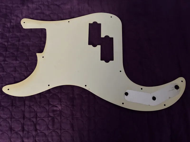 Precision Bass koptatólap 3 rétegű tört fehér színű, kisebb használati karcok vannak rajta. Repedés törés nincs ! Fender precision bass fúrataival sajnos nem egyezik ...Doručenie