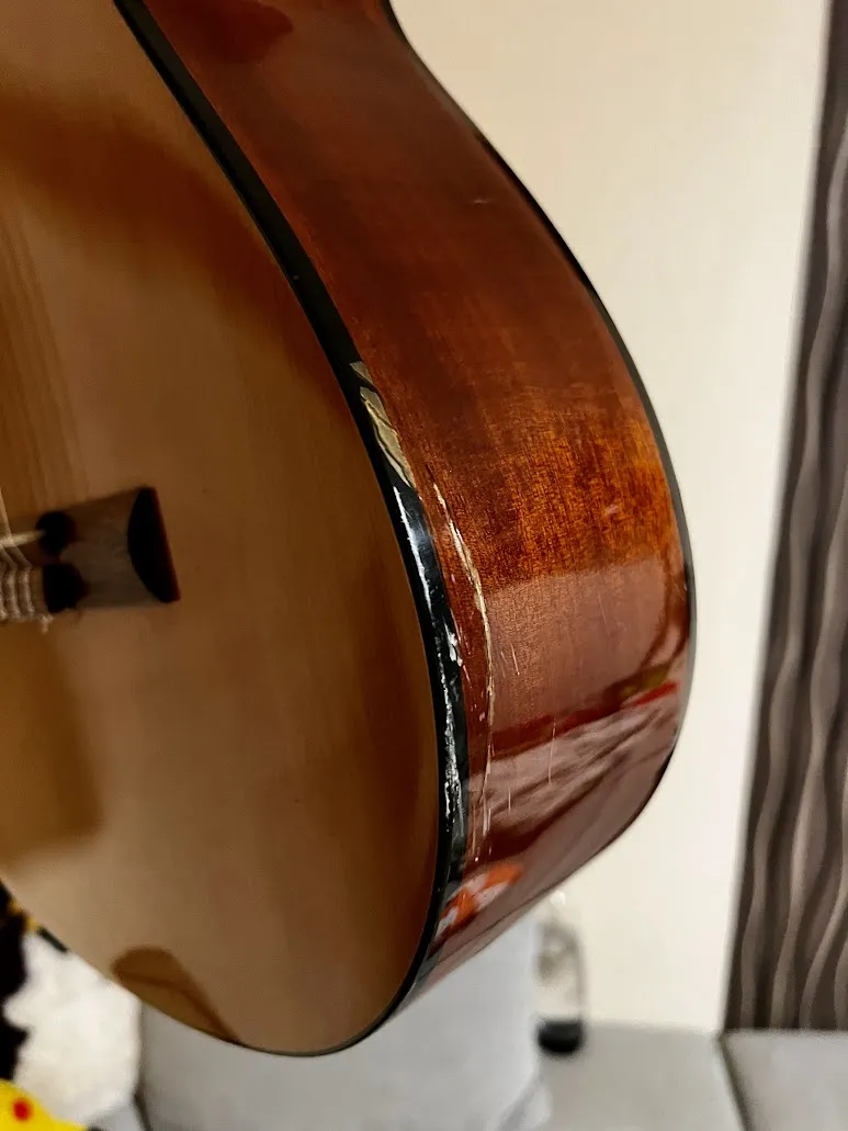 A P110 modell kiváló minőségű anyagokból készült, és a Martin gitárokhoz hasonló fej- és testkialakítással rendelkezik. A hangszer hangzása meleg és kiegyensúlyozott, a játékélmény pedig kényelmes. Az ilyen korú gitároknál gyakoriak a lakkréteg repedései, viszont ennek a hangszernek a topja teljesen ép!