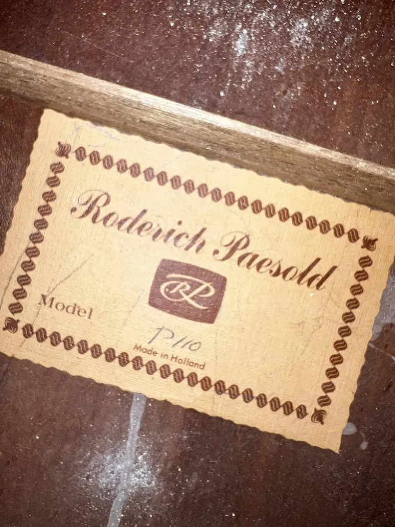 Történeti háttérA Roderich Paesold P110 egy ritka, vintage klasszikus gitár, amely az 1970-es években készült Hollandiában. Érdekesség, hogy bár a Roderich Paesold márka elsősorban kiváló minőségű vonós hangszereiről ismert, a P110-es modell nem közvetlenül a cég saját gyártása. A gitárok a C.F. Martin & Co. tervei alapján készültek, miután a Martin cég megvásárolta a Vega gitárgyártót, és a Vega modelleket Európában, különösen Hollandiában gyártották. Ezeket a hangszereket a Roderich Paesold név alatt forgalmazták, bár a Paesold cég hivatalosan soha nem gyártott gitárokat.