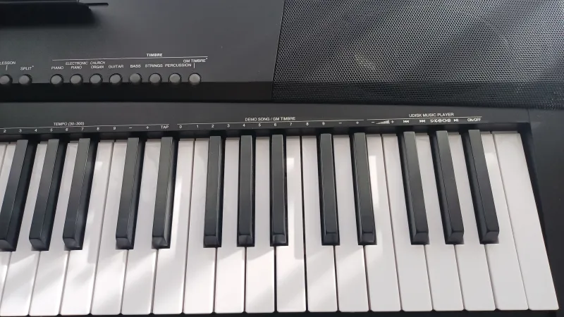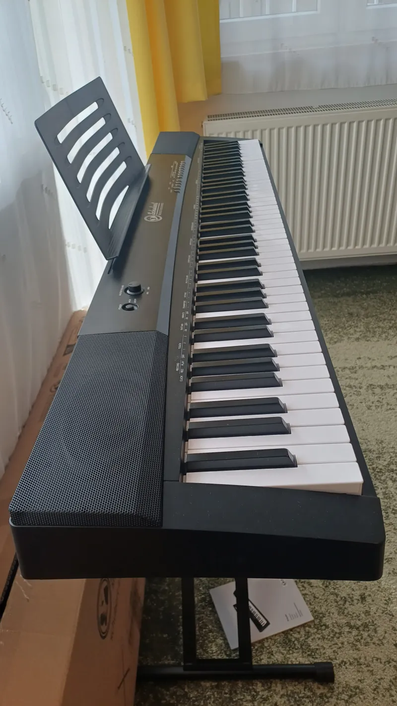 Kihasználatlanság miatt eladó új, Schubert Preludio 88 billentyűs elektromos zongora, eredeti csomagolásával, dobozával és új, VELES-X állványával. Kezdő és haladó játékosok számára ajánlott. 88 súlyozott-, 3 fokozatban állítható sebességérzékeny billentyűvel, sustain pedállal, beépített 2 db 5 W-os hangszóróval. 140 hangszín és további effektek (vibrato, sustain, transpose, octave), 16 demo. Beépített felvétel- és lejátszás funkció, beépített tanulási/oktató funkció, USB port. A billentyűzet két részre osztható, és egyforma-, vagy különböző hangmintákkal is játszható.Doručenie