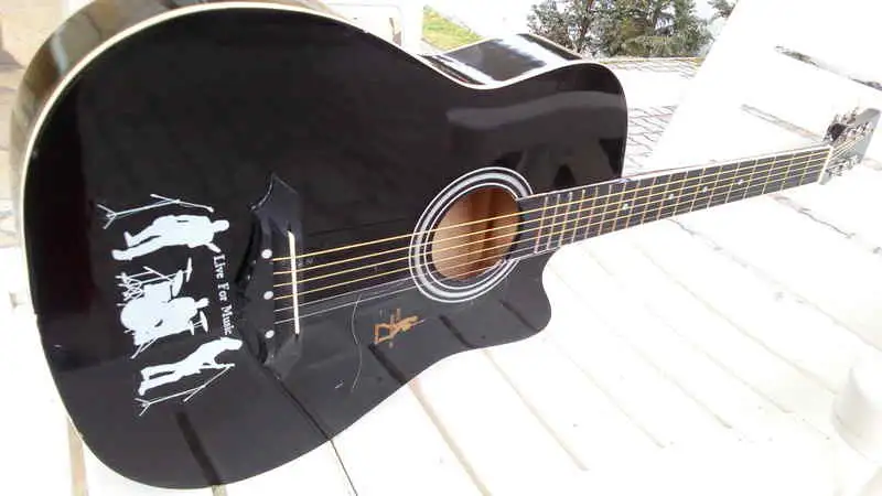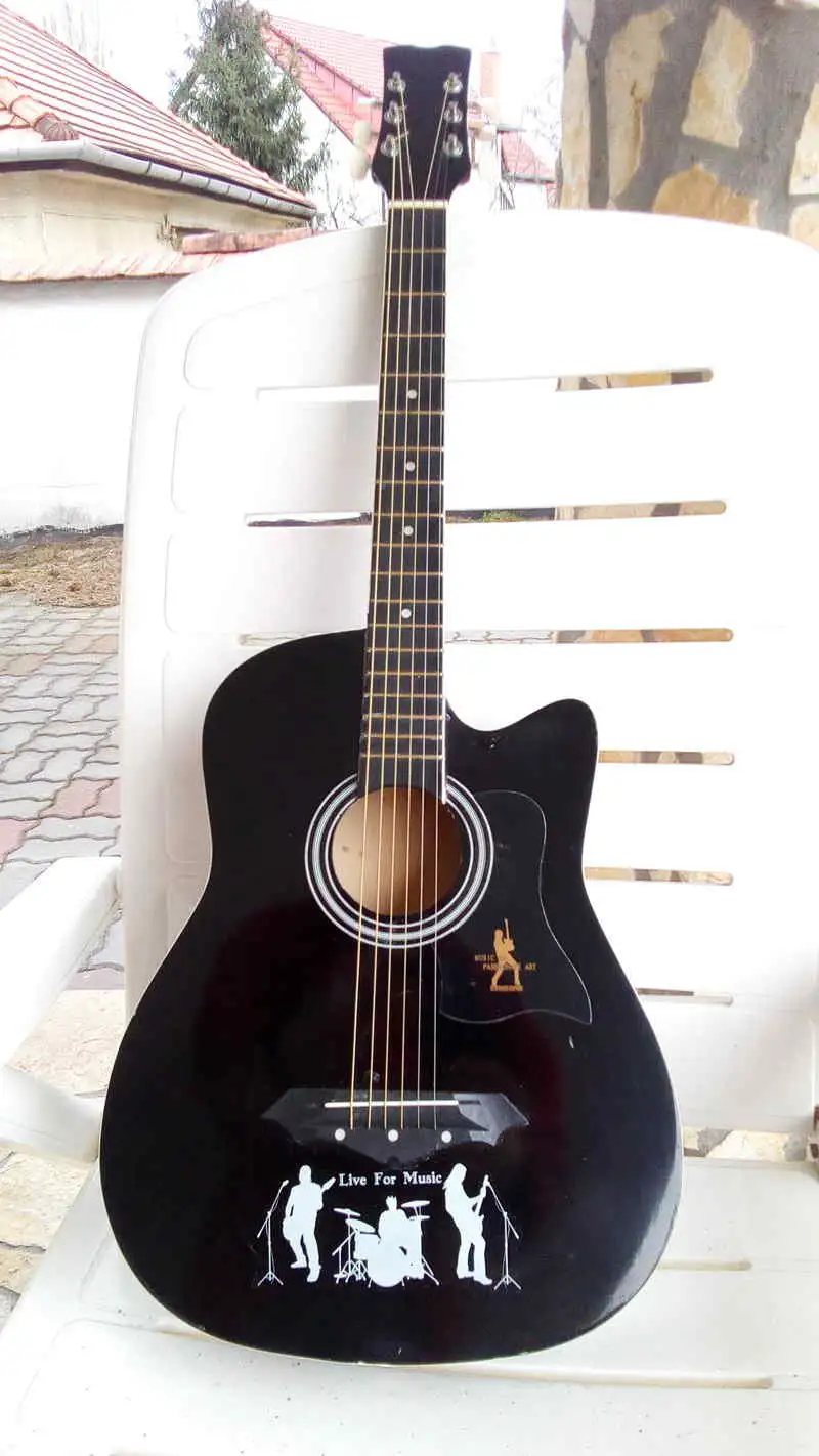 Na predaj je akustická westernová gitara s kovovými strunami uvedená v názve.