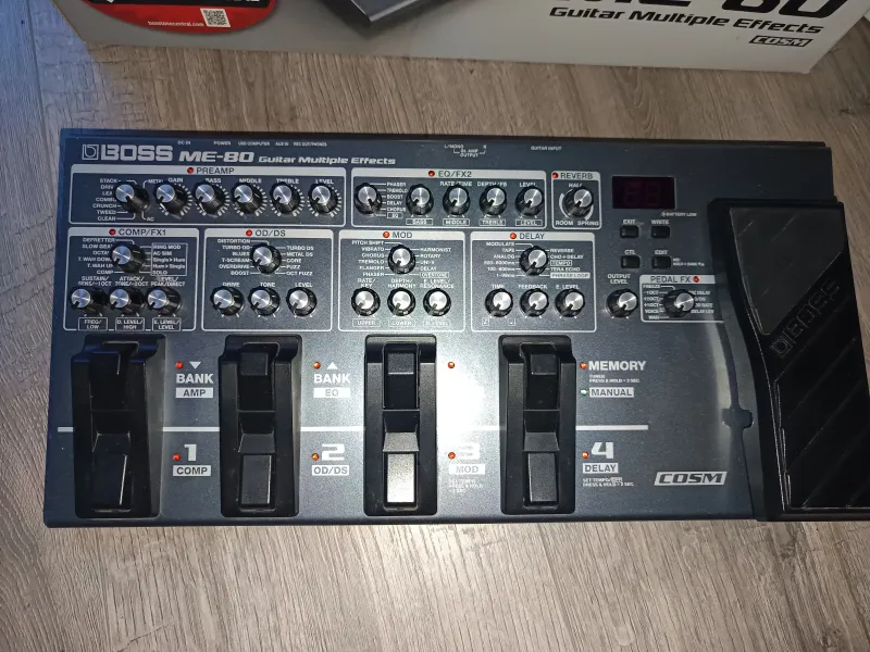 Sziasztok! Kihasználatlanság miatt eladó egy jó állapotú BOSS ME-80 típusú multieffekt, saját dobozában, angol és magyar leírásokkal.Íme néhány infó róla, de a neten ennél sokkal többet is találni róla.