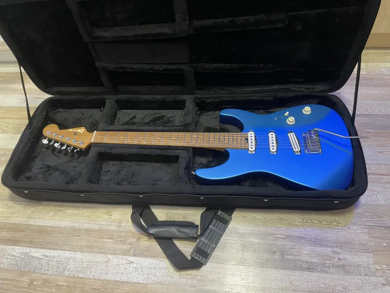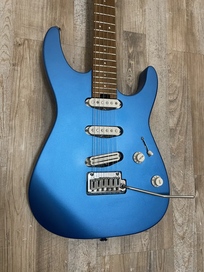 Üdvözlet!Eladó a képeken látható Charvel Pro-Mod DK22 típusú elektromos, electric blue színben. 2022-be vásároltam, első tulaja vagyok. Látszódnak rajta kisebb sérülések, sokat volt színpadon az elmúlt három évben. A gitár nagyon kényelmes, igazi ˝shred-machine˝, egy modern strat.