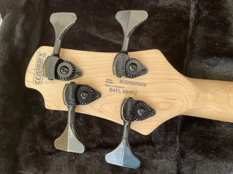 Fogólap: jatoba, 26 vonalas fretless bund nélküli kivitelben (a bundok végénél apró jelölővel)