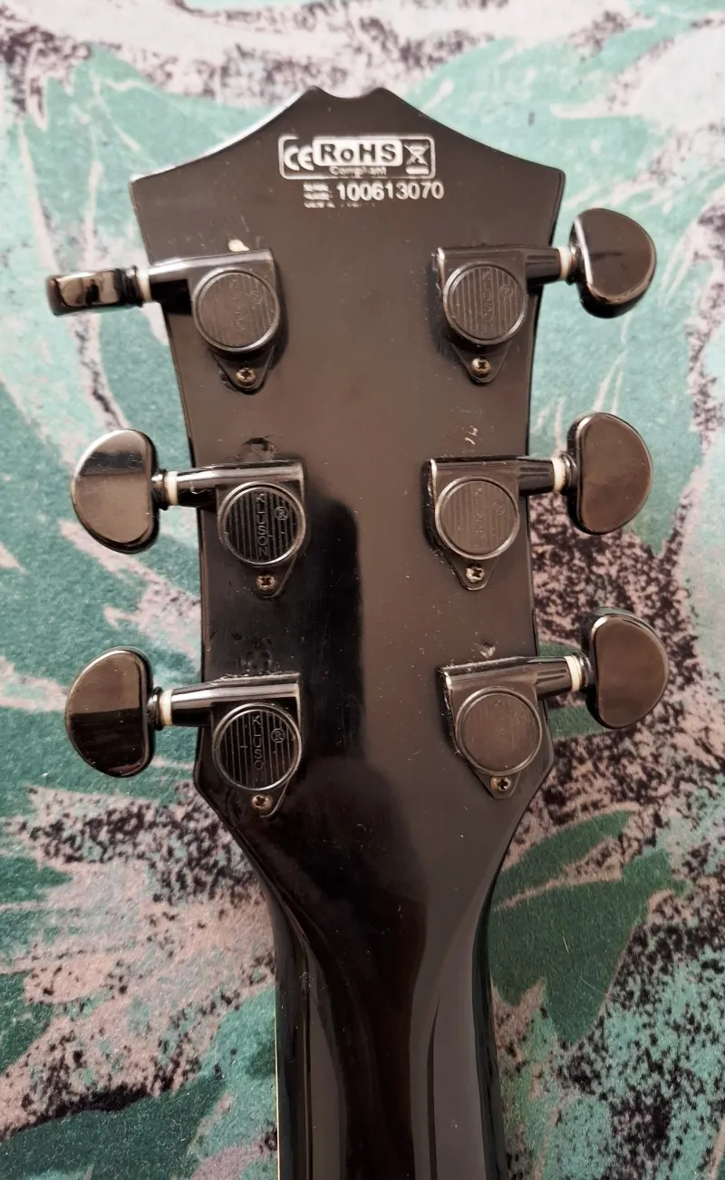 A gitár feje kapott egy kis festést a Cort logó helyett. (Lakkozva van.) A hangolókulcsok (Kluson) és a pótmétersapkák feketére lettek cserélve.