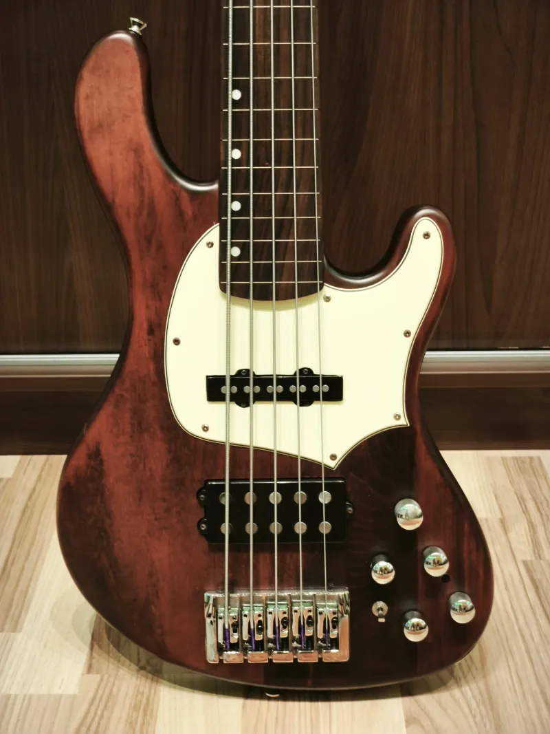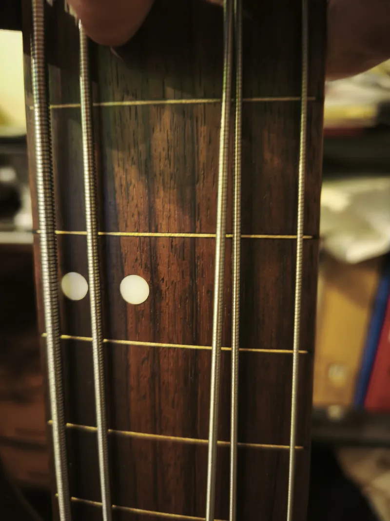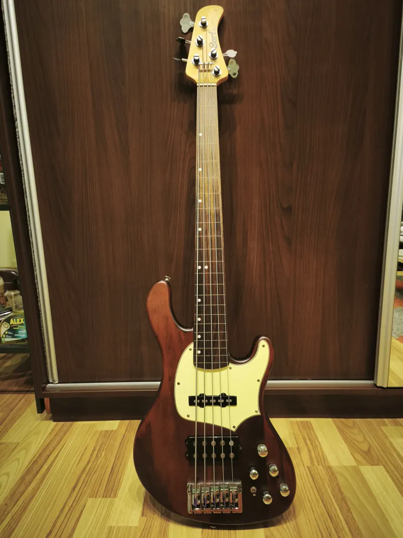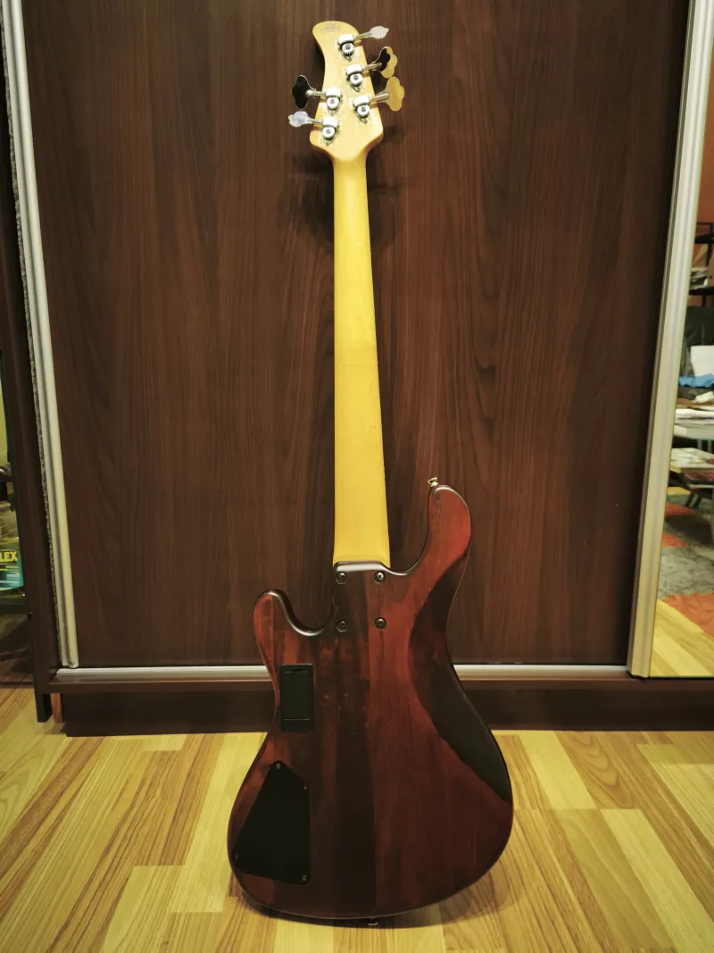 Eladó egy rózsafa fogólapos fretless Cort GB-35. A Vintage 52-ben szedték ki a bundokat és csiszolták nyílegyenesre a fogólapot. A hátsó hangszedő felezhető (első tekercs, mindkettő, hátsó tekercs), hangerő, balance, mély, közép es magas hangszín potik. Új húrláb (19 mm húrköz), csont nyereg, Artec preamp, Hipshot Licence kulcsok, üregek rézfóliázva. Frissen beállítva új Ernie Ball Slinky Flatwound 45-ös szettel. A hangszer ugyanabban a gyárban készült ahol a Lakland 55-02-es. Alacsony húrnyomás, elképesztően sokoldalú hangszer. Ennyiért nem találsz 5 húros fretlesst ami ennyire sokoldalú.Egy puha Thomann tokot adok hozzá.