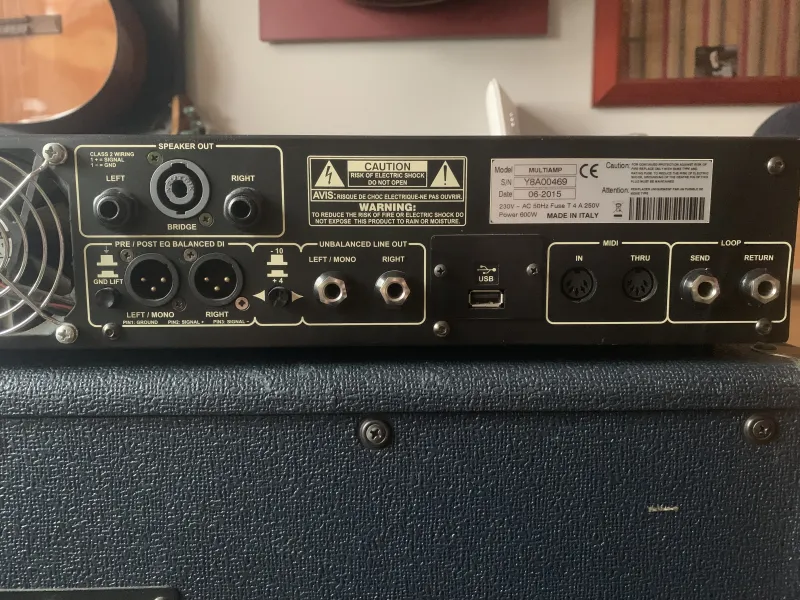 A készülék 1 jack mono csatlakozóval rendelkezik a bemenethez, 2 jack mono és 2 XLR dugós csatlakozóval a kimenethez, MIDI in / through, Gain, Presence, Level, Master és Bass-Mid-High vezérlés.