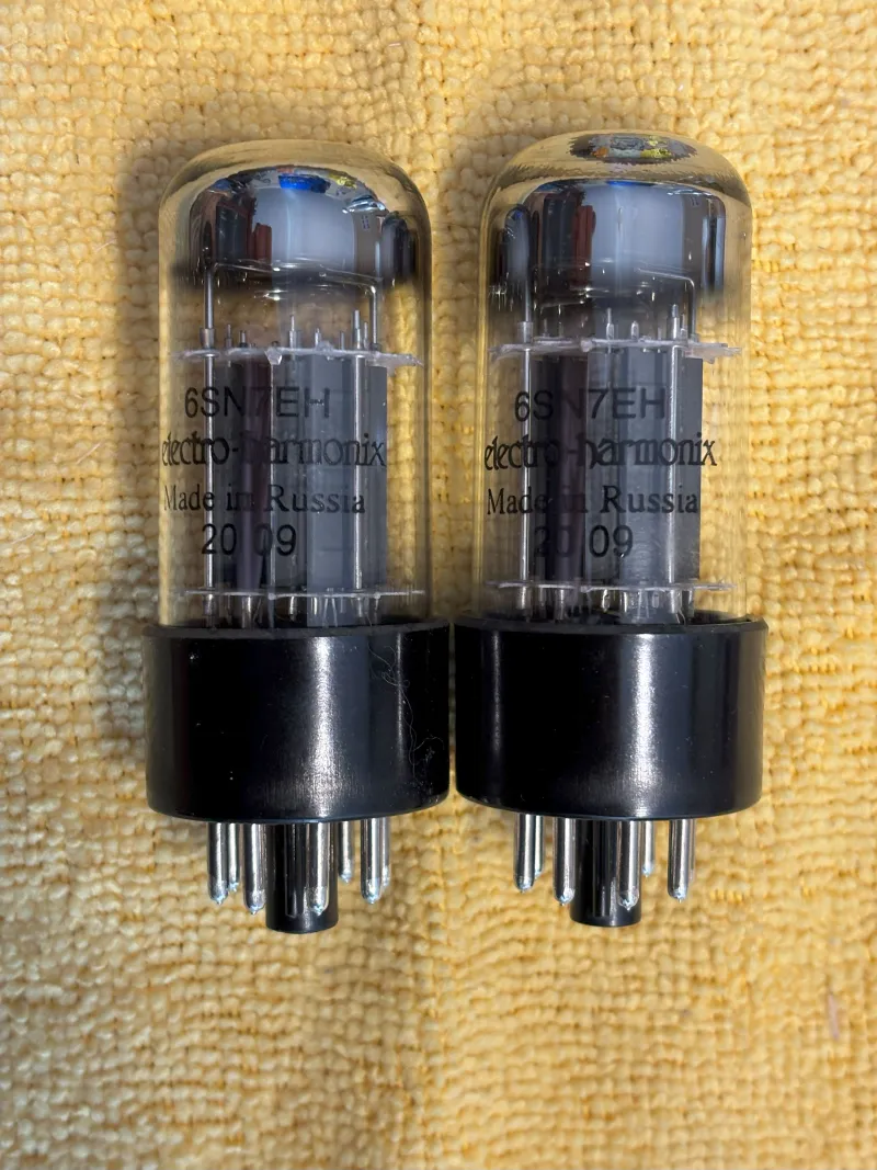 Electro-Harmonix 6SN7EH - új gyártású cső, orosz gyártmány, 2020-es évek, fehér doboz, gyárilag párba válogatva, ezekkel érkezett az erősítőm, de rögtön cseréltem NOS csövekre. Az állapota új, de nem bontatlan csomagolású.