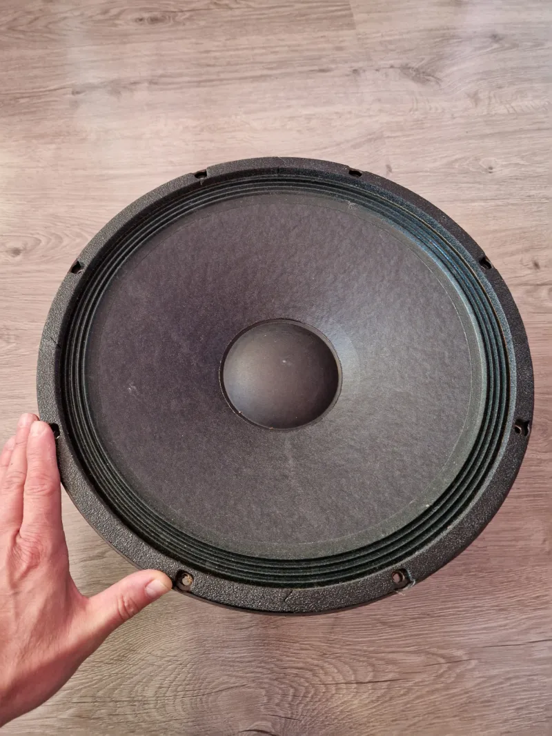 Adatok: 15˝-os, öntvénykosaras, 600W csúcs-, 300W program teljesítmény, 8 Ohm-os impedancia.