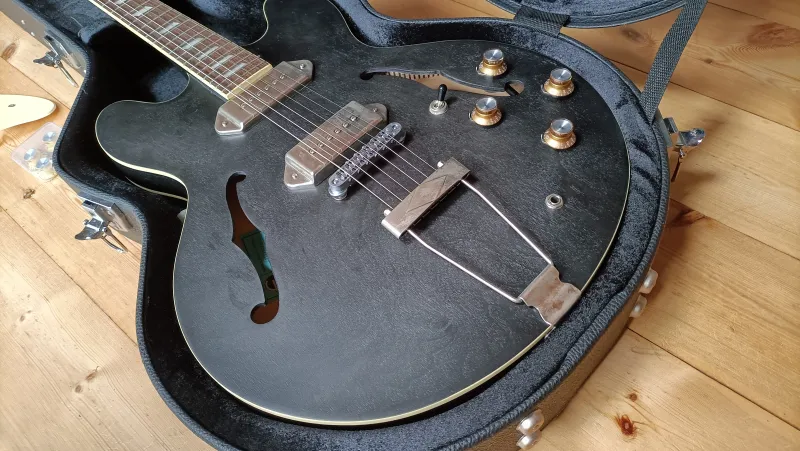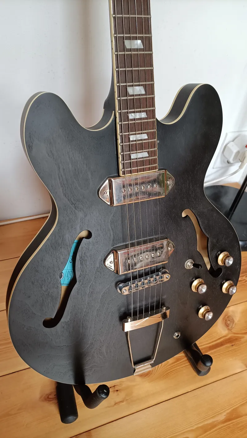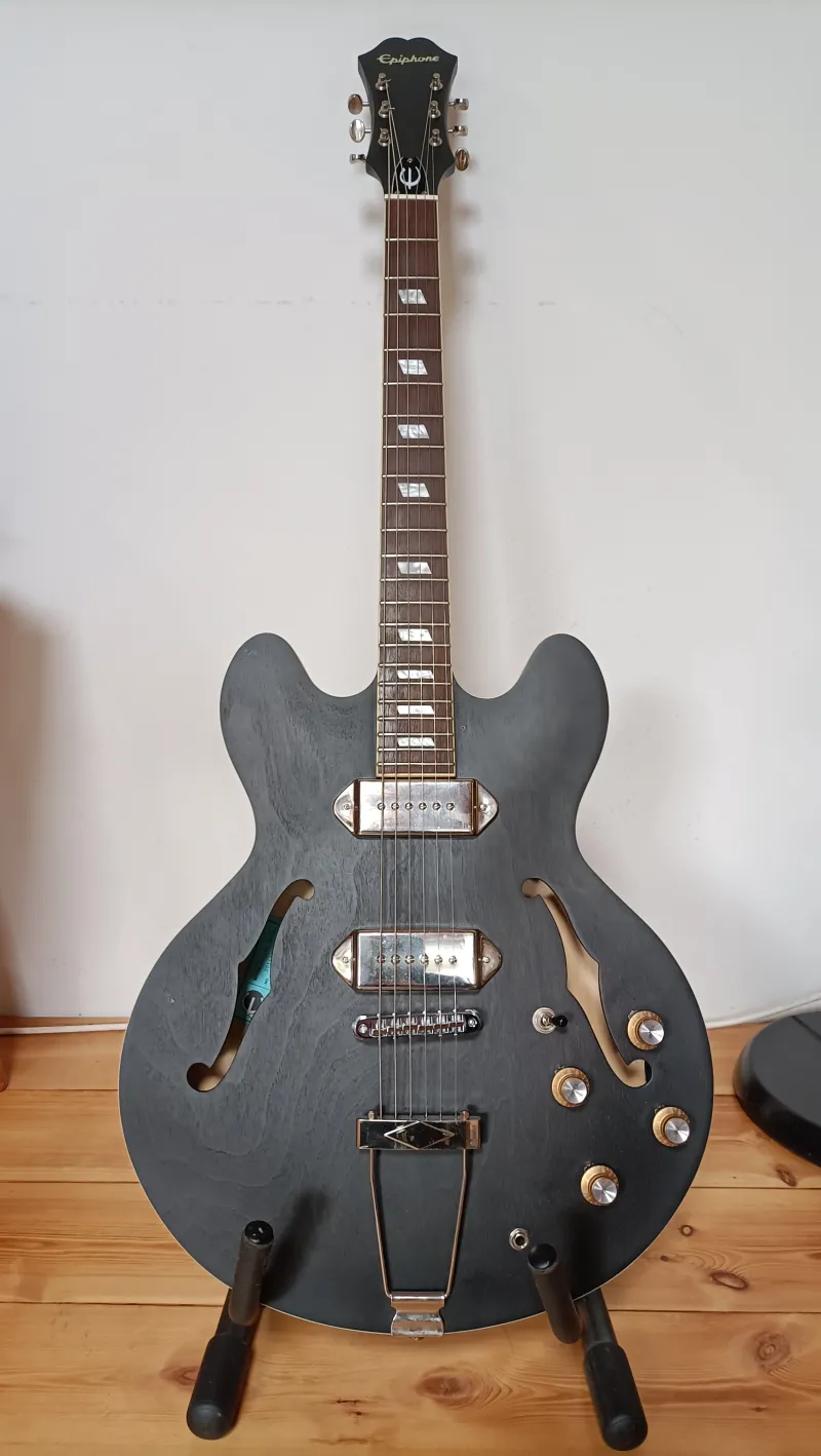 Eladó egy Ephiphone Casino Worn Ebony gitár.Az állapota teljesen újszerű, gyakorlatilag kicsomagolva volt, de nem volt soha használva. Tokjában pihen. Az ár tartalmazza a kemény tokot is, valamint 3 db különböző színű koptatót is.