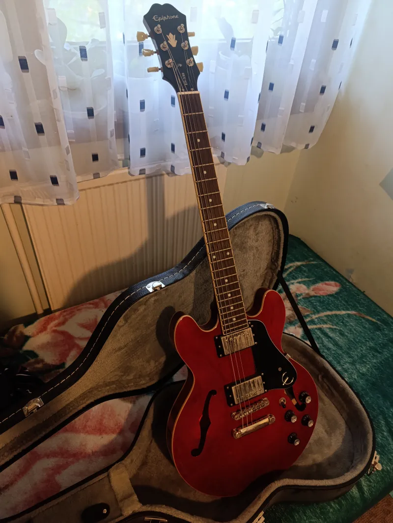 Eladó alig használt epiphone es339 cherry gitár. Kiváló ár-értékű hangszer, keménytokkal.