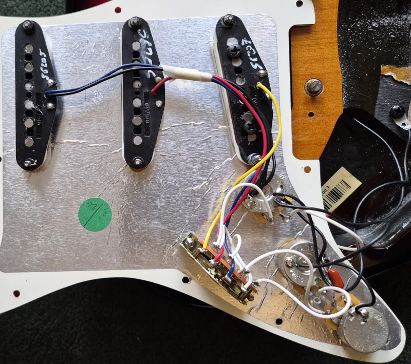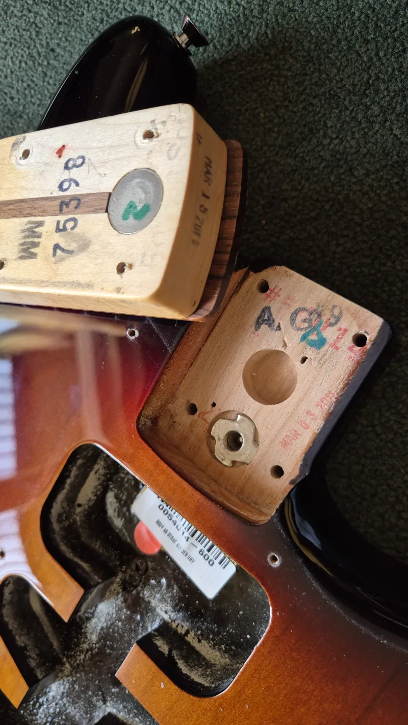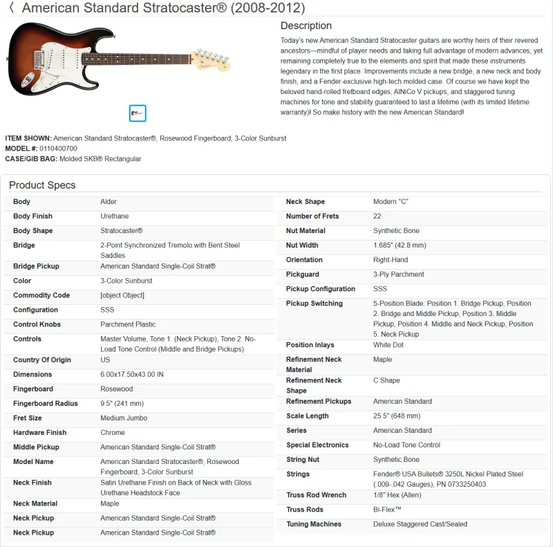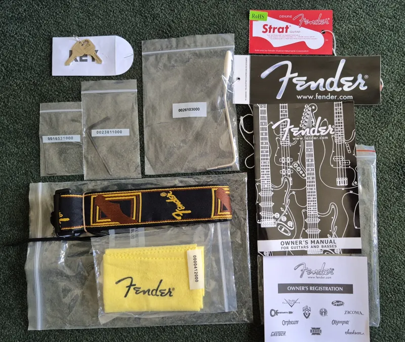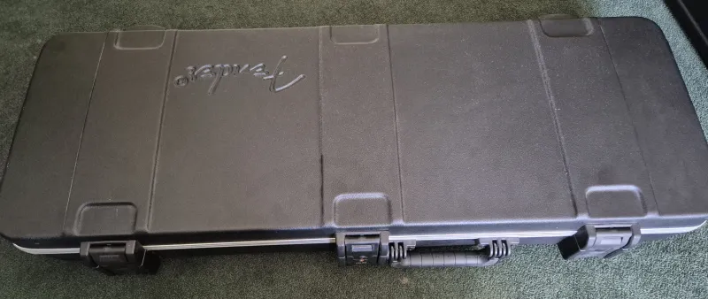 Eredeti tokkal-vonóval. Súlya kb 3.5kg. Szerintem minden eredeti rajta (lásd fotók alábbi linken!). Pálca, elektronika működik. Bundok szerintem 90%-osak. Az én pengetési stílusommal 1.75mm-es húrmagassággal (12. bundnál E1, E6 húroknál) tudtam csörgésmentesre beállítani 9-42-es húrokkal.