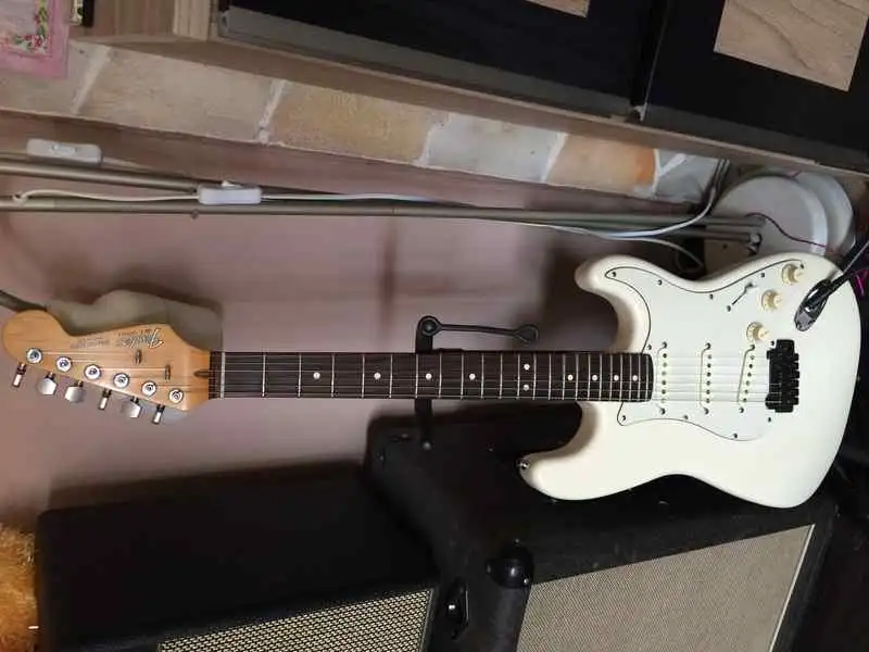 huendeskesSOS Zníženie ceny, kým je požadovaná vec stále k dispozícii. (z 450 000) Rok výroby 1984, veľmi pekný stav, zachovalá USA Fender Strat. Elektronika zapojená podľa vzoru série Vintage 62, s vybranými snímačmi zo sady Seymour Duncan SSL-1. Skutočný vintage, vyzretý krásny zvuk. Wilkinson tremolo. Toto je technická stránka, zvuk musíte počuť a zamilujete si ho! Na predaj s čiernym pevným kufríkom Sound Station, prípadne vymeniteľný s doplatkom za mexický Fender Classic Player 60 Strat, Road Worn 60 Strat. S vyrovnaním hodnoty. Nebudem vymieňať za nič iné, ďakujem.