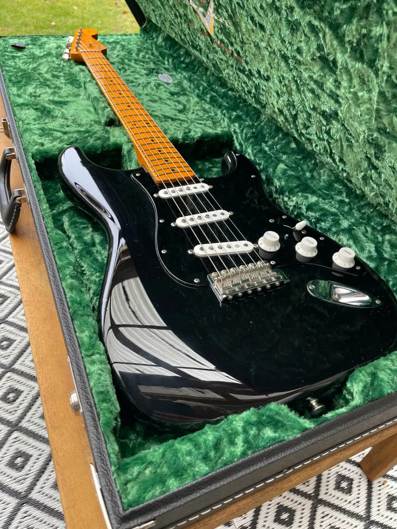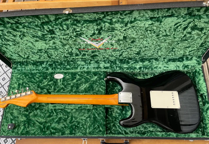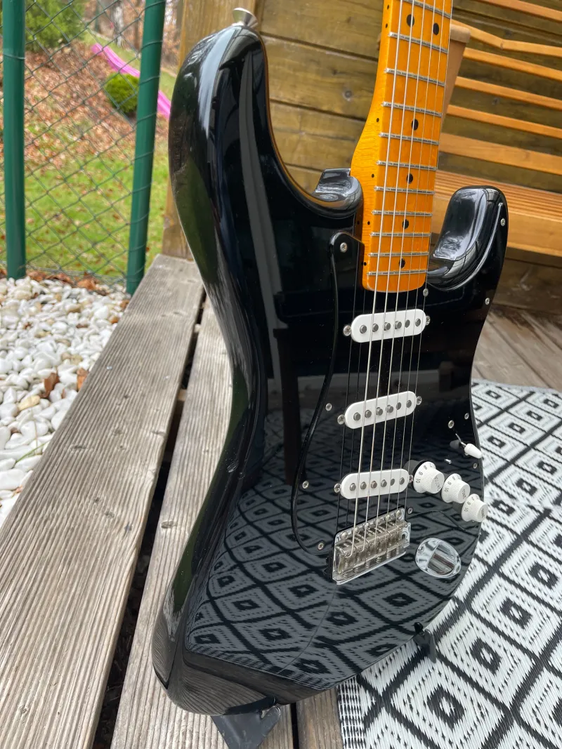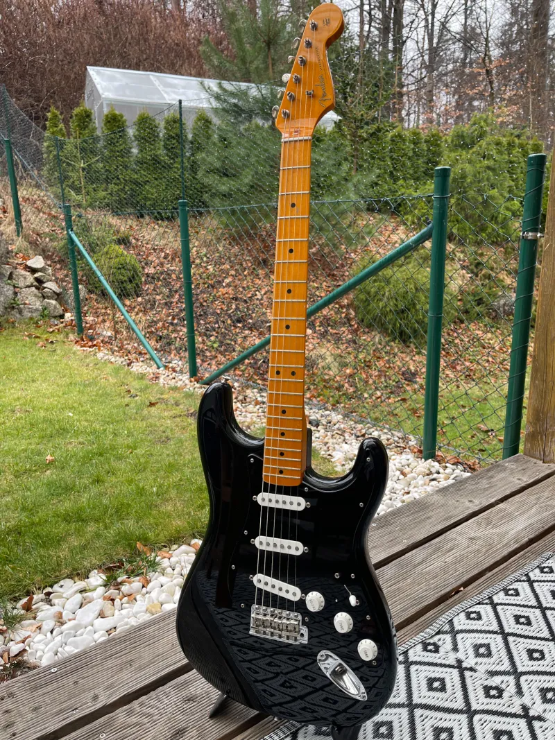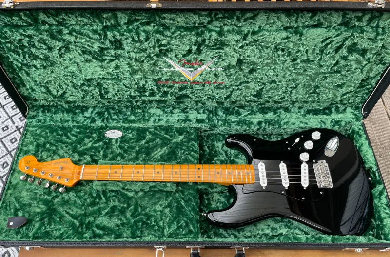 I`m selling this rare Fender Custom Shop David Gilmour signature, the legendary Black Strat from 2016. All original, complete case candy (book, cable, strap, COA, CD/DVD, strings, tremolo arm, documents), case. The guitar is set up by my guitar tech and ready to play. It has a few dings, but just in the top layer of the nitro finish and looks great with the slight natural relic. Free insured shipping from the Czech Republic to Hungary fully insured and tracked in a fender box.Prepojená recenzia