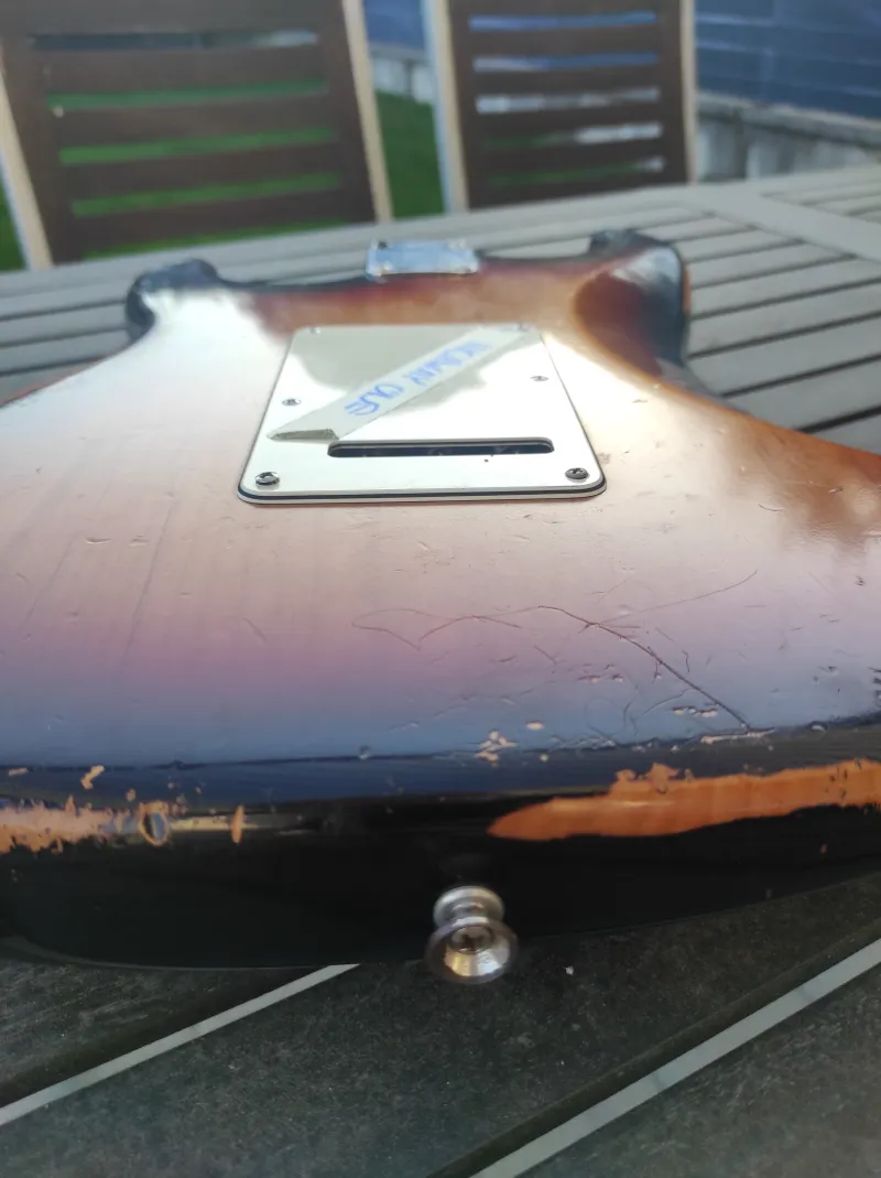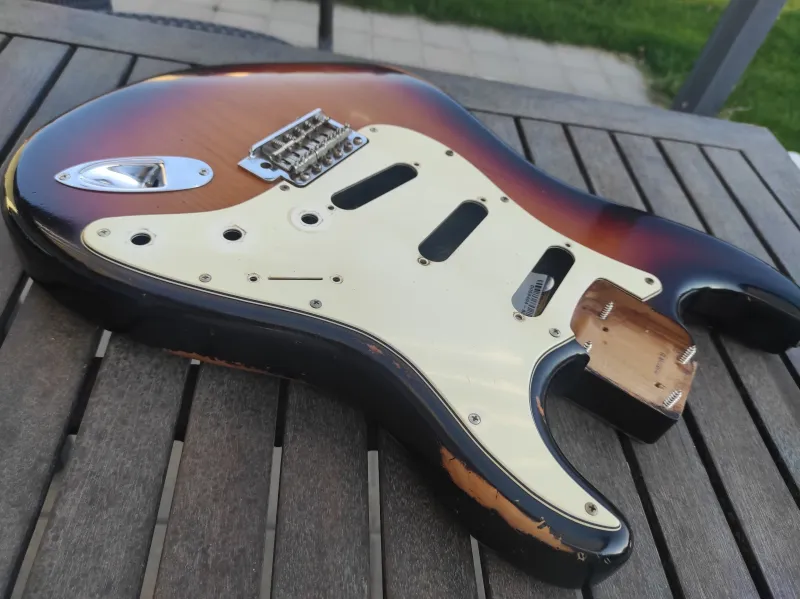 2007-es HW1 USA Stratocaster test, képen látható gyári szerelékeivel. A test gyárilag vékony nitro lakkal lett fujva, (naturál relic).Inkább személyes átvétel.
