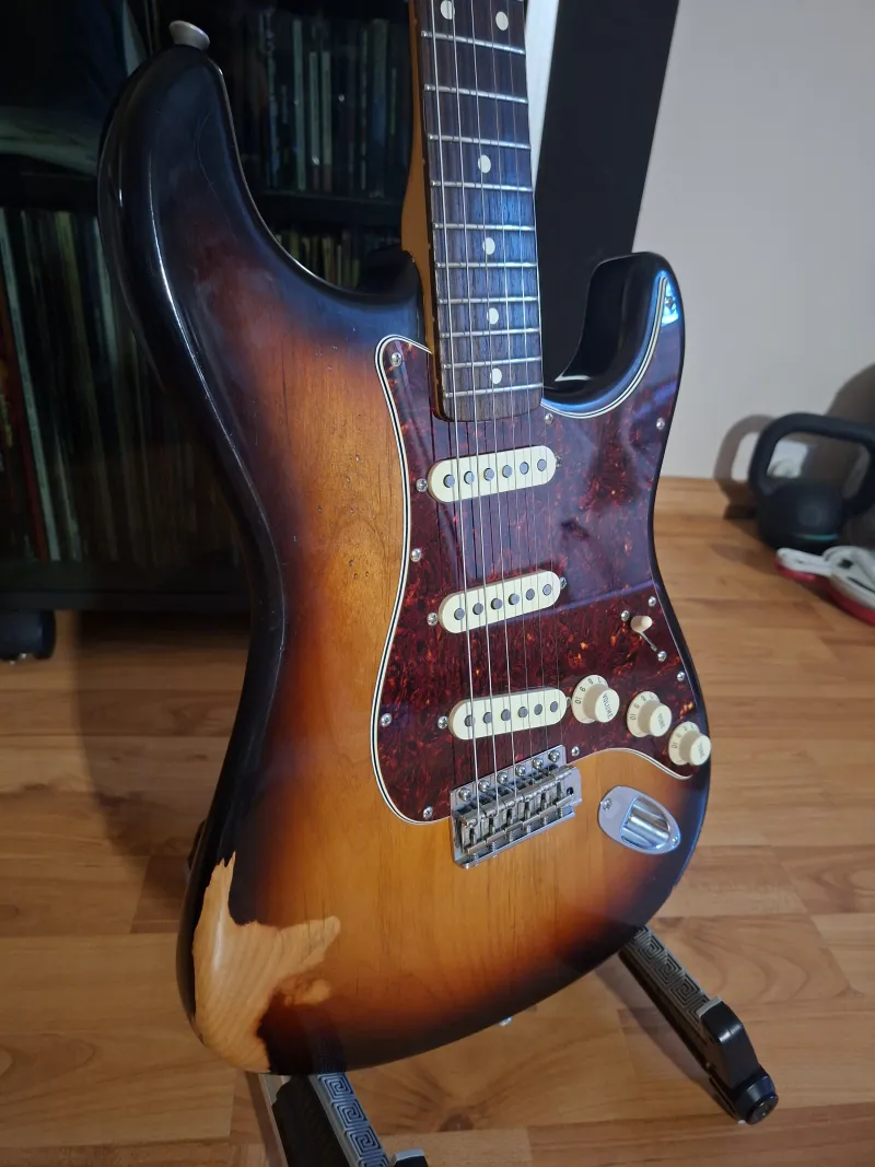 Eladnám a 2014-es Fender John Mayer Stratomat reális áron mivel nem gyűjtői állapotú. A következő módositások lettek rajta elvégezve:- Eredetileg fehér volt de a vastag poly festés idővel hajlamos repedezni, ezért kapott egy full nitro festést de immár 3 tónusú sunburst-re izléses reliccel, német hangszerész végezte. Az alkar kopás imitált, festve van, nincs fáig lekopva.