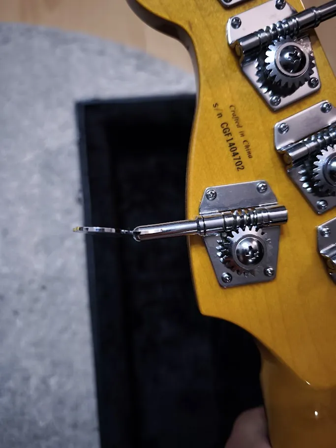 Az egyik hangoló kulcs kicsit meghajlott az idők folyamán, nem olyan rég vettem észre. A hátán a festék kikopott a körülbelül 10 év használat alatt, a koptató karcos, de egyébként szerintem szép állapotban van.