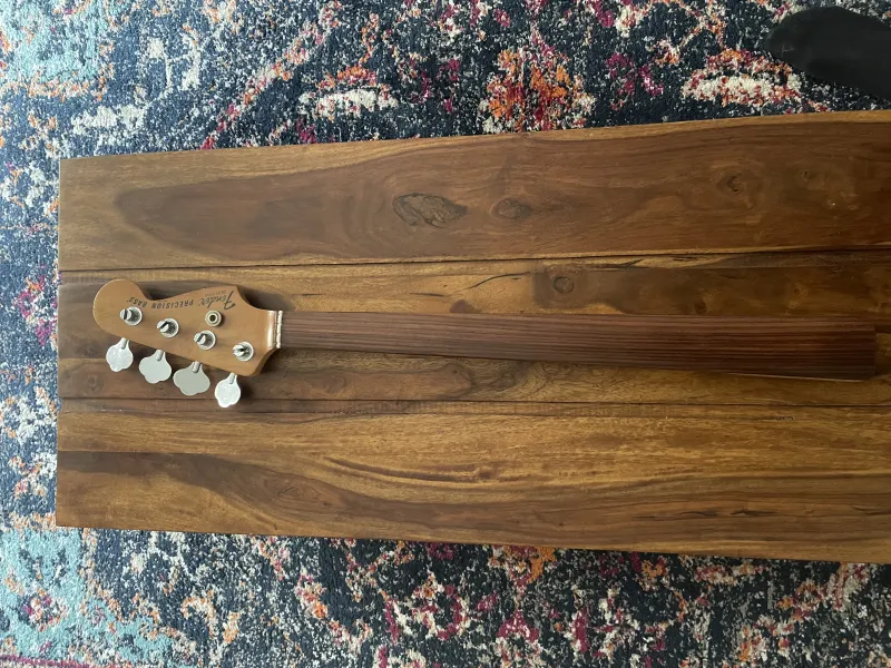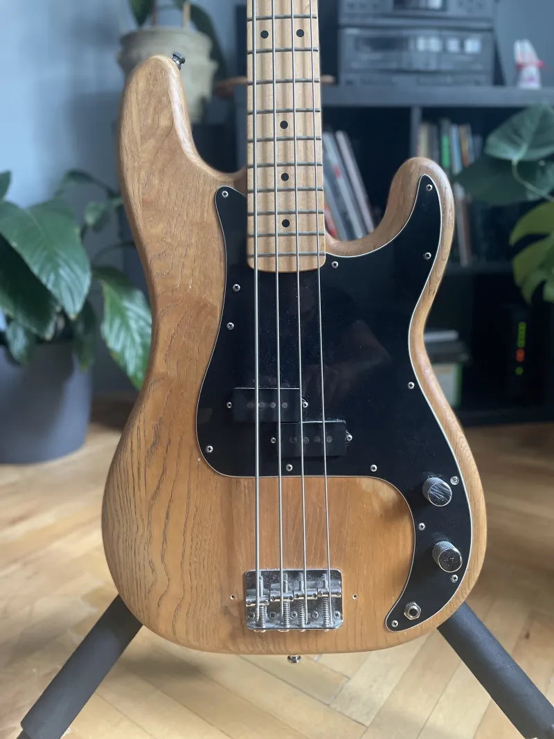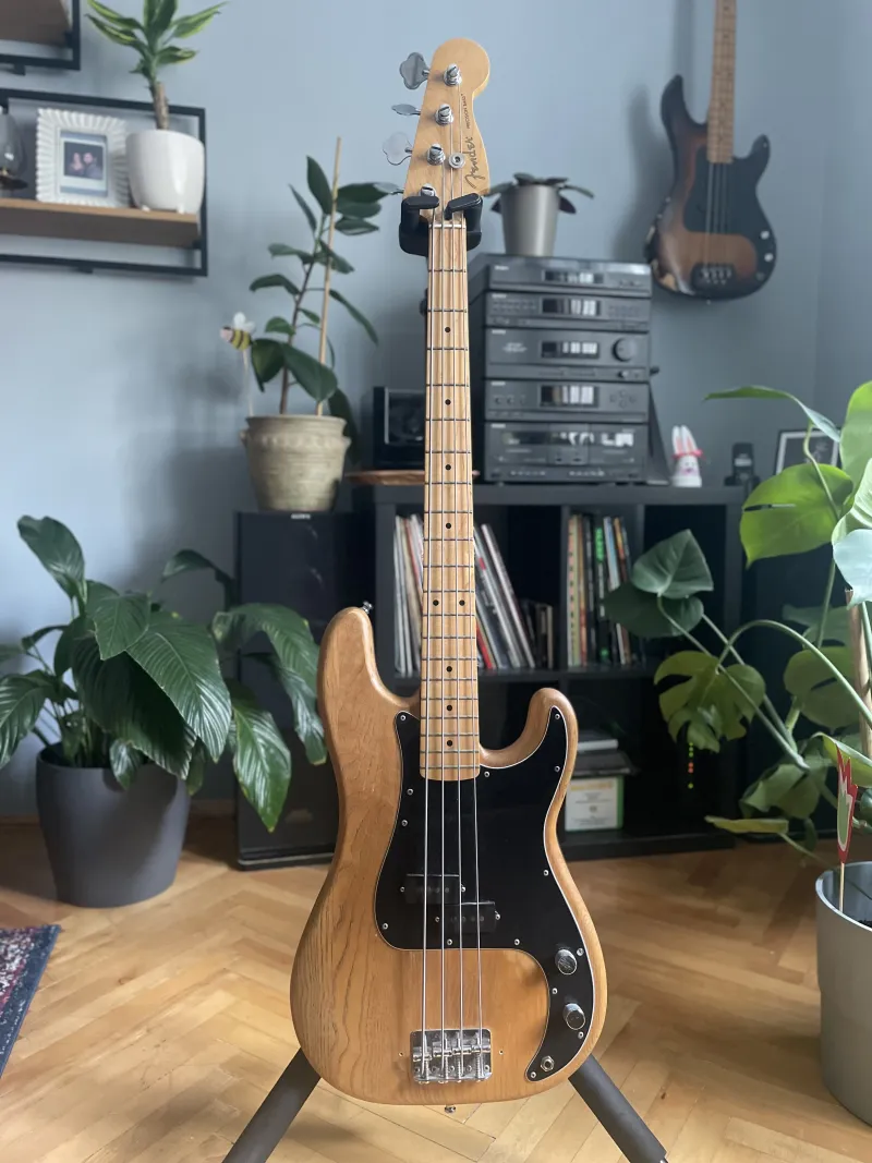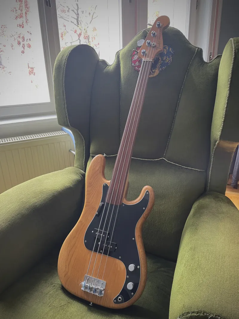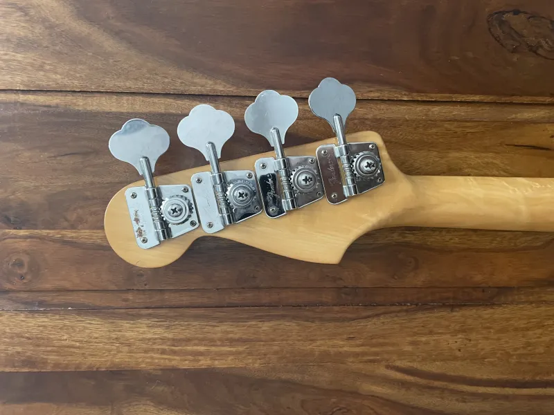 Eladó 1977-78-as Fender Prec. Fejen lévő szériaszàm alapján 78 év eleji, de a gyári potik 77-esek. Gyárilag jelöletlen rózsafa fogólapos fretless, jelenleg egy mexikói nyak van rajta, az eredeti fretless mellé adom ezt is. Minden eredeti alkatrésze megvan, a potik valamikor cserélve voltak, de az eredeti 77-esek is megvannak, valamint a koptató is cserélve volt, abból szintén megvan az eredetije, gyáriszámmal. Hüvelykujjtámaszt leszedtem, de megvan az is.Van hozzá egy korabeli keménytokom, de az sajnos nem az eredeti.