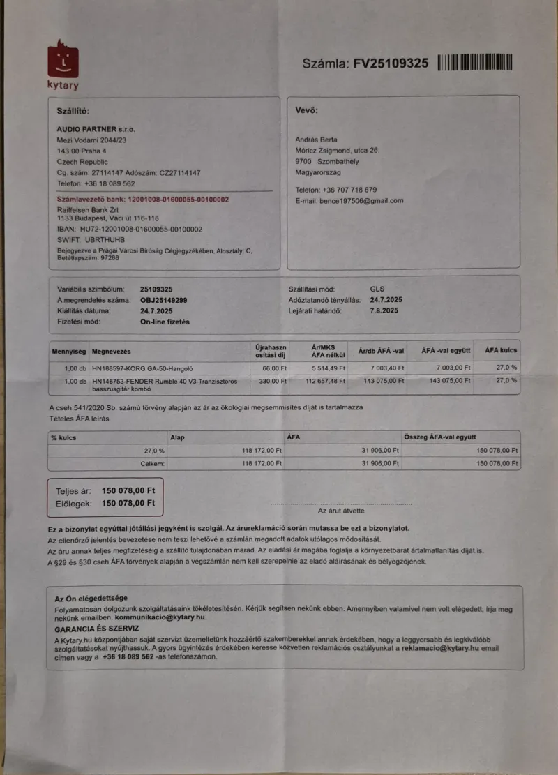 Tipusváltás miatt, eladó Fender rumble 40 v3 basszusgitár kombó. 2025 júliusában vásároltam, számla, garancia megvan. Csak szobában volt használva. Hibátlan, sérülésmentes. Csak személyes átvétel, próbával.Prepojená recenzia (1)