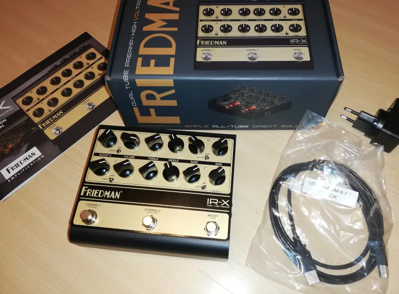Friedman IR-X kétcsöves, két független csatornás előerősítőpedál, beépített végfok és láda szimulátorral.Az első csatorna Marshall Plexi, a 2. csatorna Friedman BE100 erősítőjének az előfoka. Mindkét csatornához Boost is tartozik.