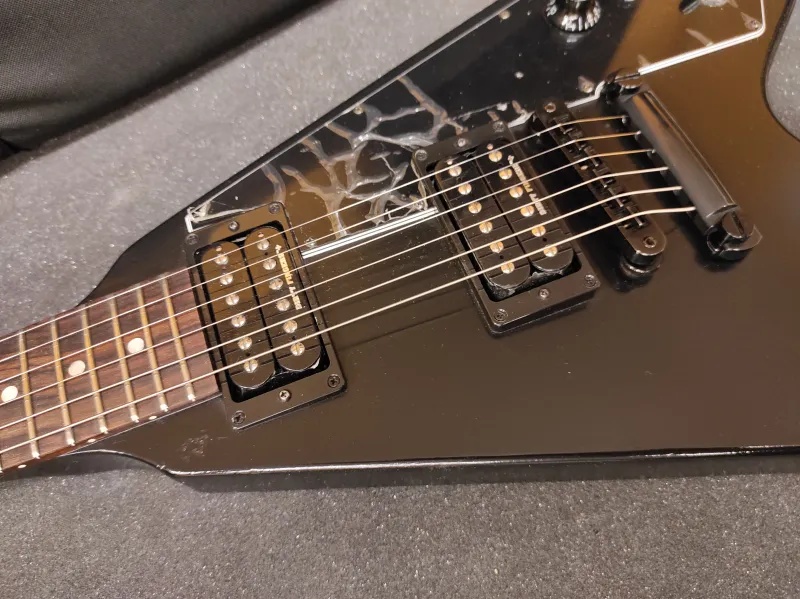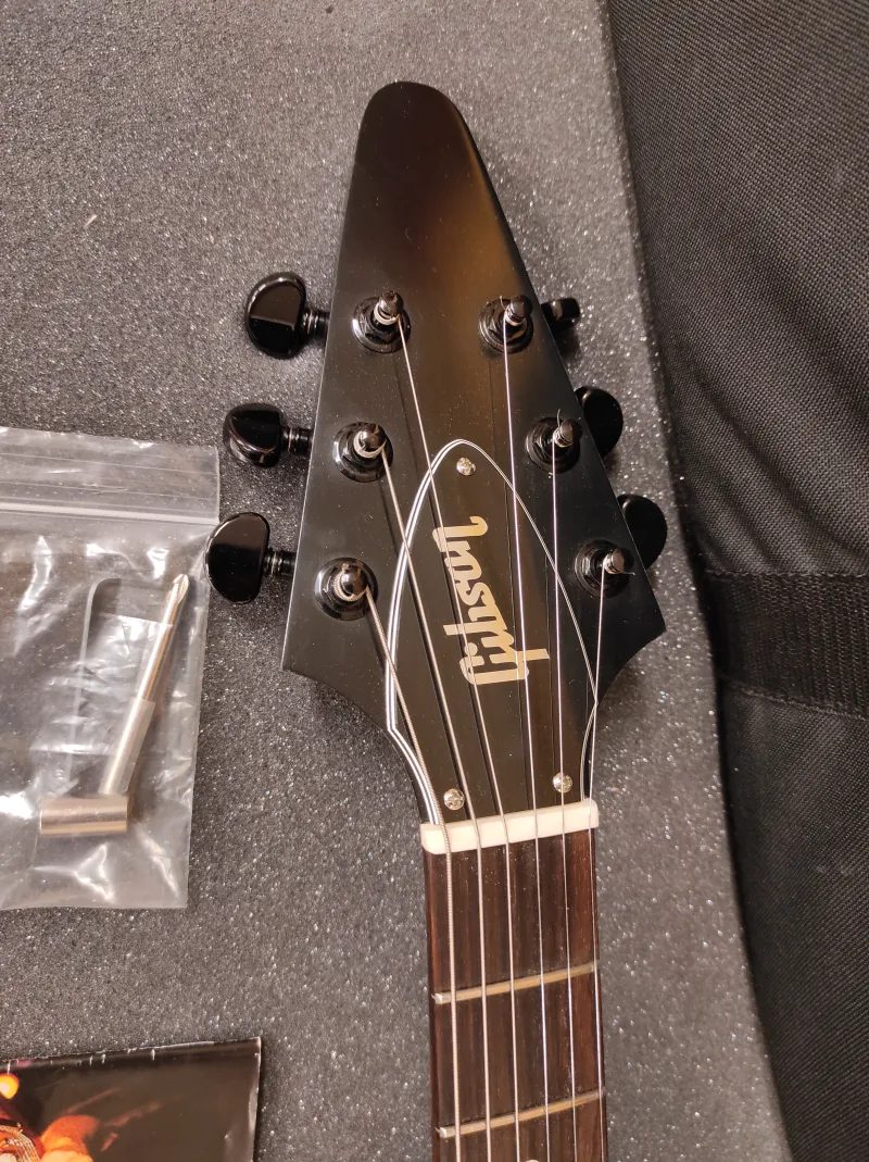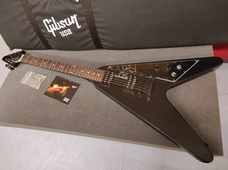 Eladó egy Gibson Flying V B-2, 2019-es modell, második tulaj vagyok.A gitár decemberben újra lett bundozva szakember által, fogólap/bundok síkba csiszolva és kapott csont nyerget! Ezen kívül mindene gyári, költségmentes, pontos, rezonáns gitár, nem fejnehéz, a koptatón még rajta a fólia, tartozék gyári puha tok.