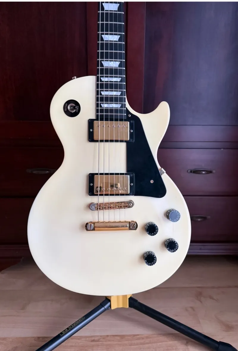 Eladó egy patinás Gibson Les Paul Studio. Mindene eredeti kivéve a Schaller StrapLock gombok. Papírjával. Gyári tokot nem, de keménytokot tudok hozzá adni!Prepojená recenzia (1)