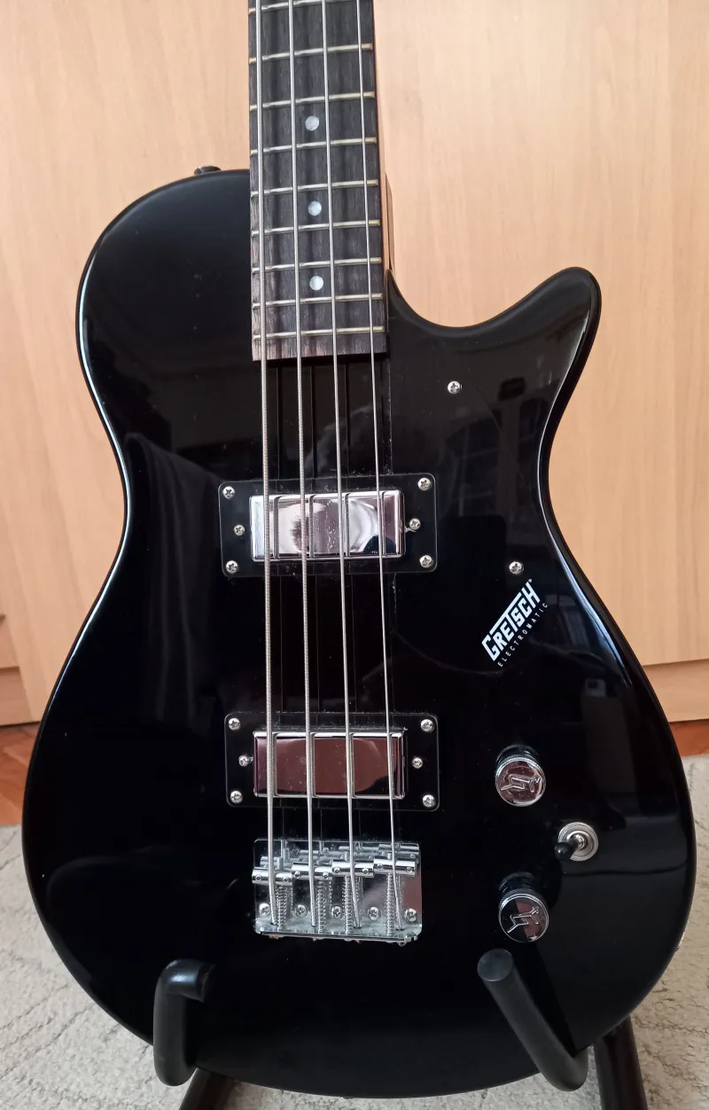 Eladó Gretsch G2220 Electromatic Junior Jet II Black Walnut rövid menzúrás basszusgitár. Paraméterei:• Test: hárs