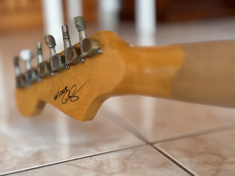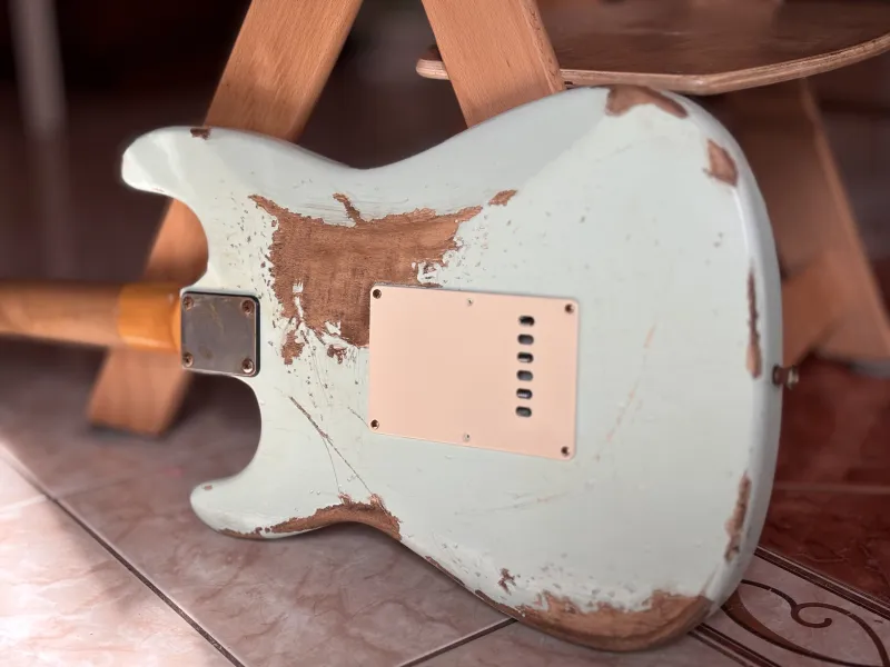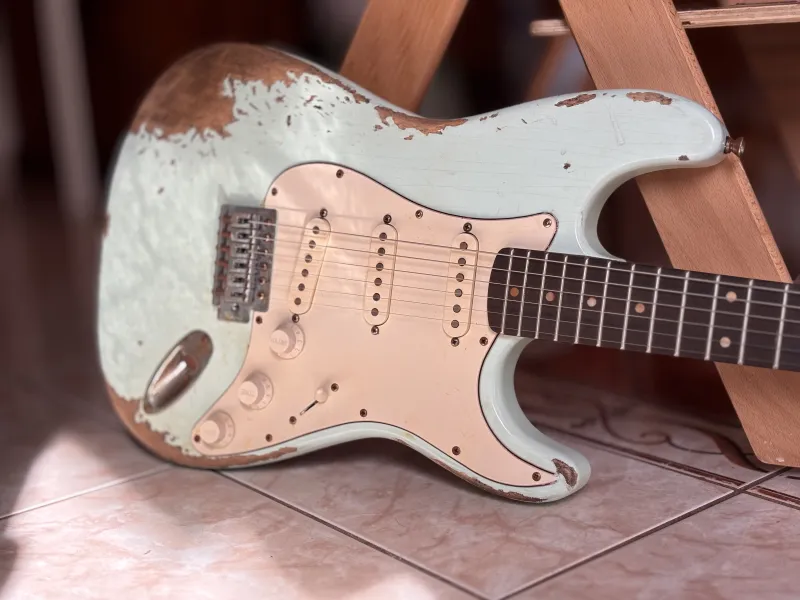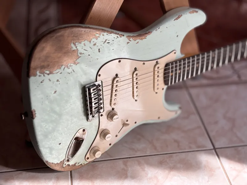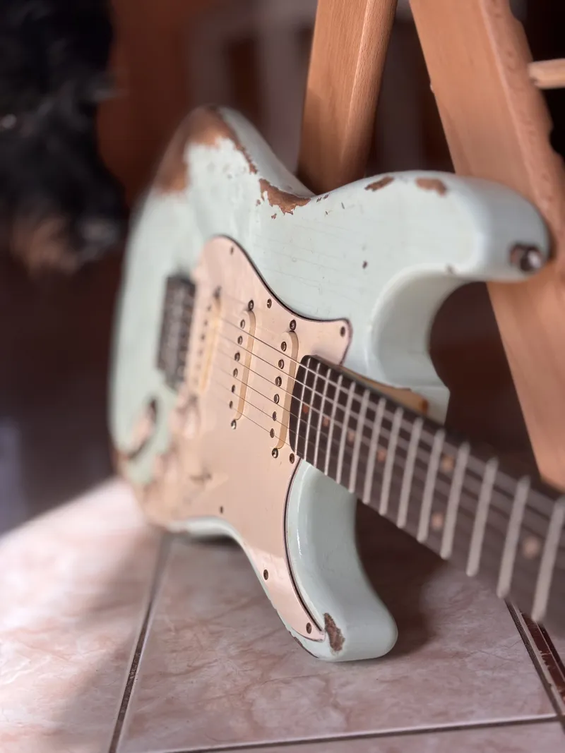 Öregített éger test, jávor nyak, rózsafa fogólap. A gitár az 1959-es Fender Stratocaster mása( a nyakállító pálca helyét leszámítva). Kézzel tekercselt alnico3 hangszedők vannak benne, kb 5,6-6.0k.