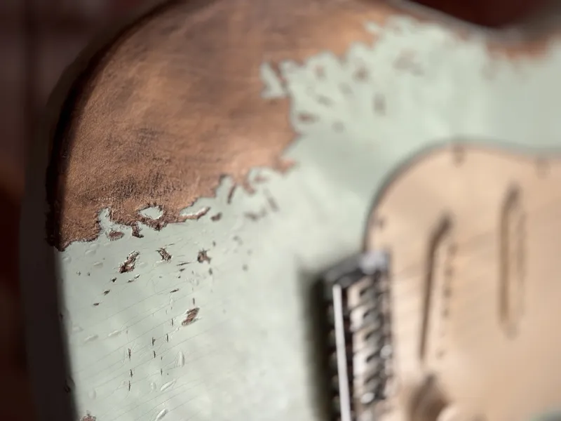 Vastagabb C nyakprofil, medium-vintage bundok. Kézzel öregített Nitro lakkozás. A hangszer minden csavarja korhűen öregítve van. Sorszámozott darab, eredetiséget igazoló plakettal. Egy kinézetben, hangban és játékélményben is kiváló lenyomata az gitározás hőskorának.