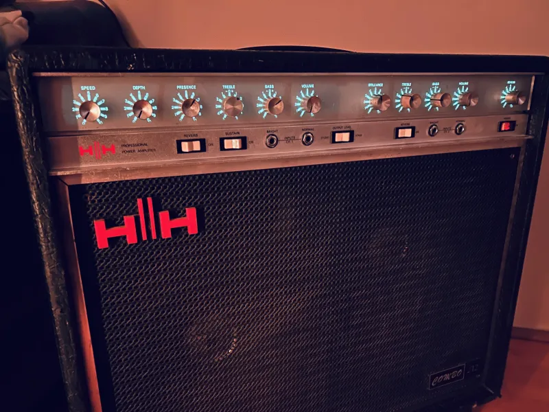 Eladó ez az 1975-ben, Angliában (Cambridge városában) gyártott HH Electronic IC100 kombó! Két csatornás, csatornánként Bright és Normal bemenetekkel, külön EQ-val. Beépített, szabályozható Vibrato, hibátlanul működő Reverb, és egy Sustain kapcsolóval ellátott torz csatorna gondoskodik a hamisítatlan HH élményről! “Ebben a készülékben a rézdrót még réből készült˝ jeligére…Egy Output Level kapcsolóval felezhetjük a teljesítményt, amire szükség is van, mert az amp kifejezetten hangos a maga 100 wattjával. Apropó, a “cső vs. modellező˝ vitát garantáltan megnyered, ha megveszed, mert ez bizony full tranzisztor elejétől a végéig. A pedálokat nagyon szereti. Két gyári 12˝-es HH hangszóró dolgozik benne. Csajozással sem lesz gondod, mert a potik mögötti EL-panel bekapcsolt állapotban nagyon menőn világít.