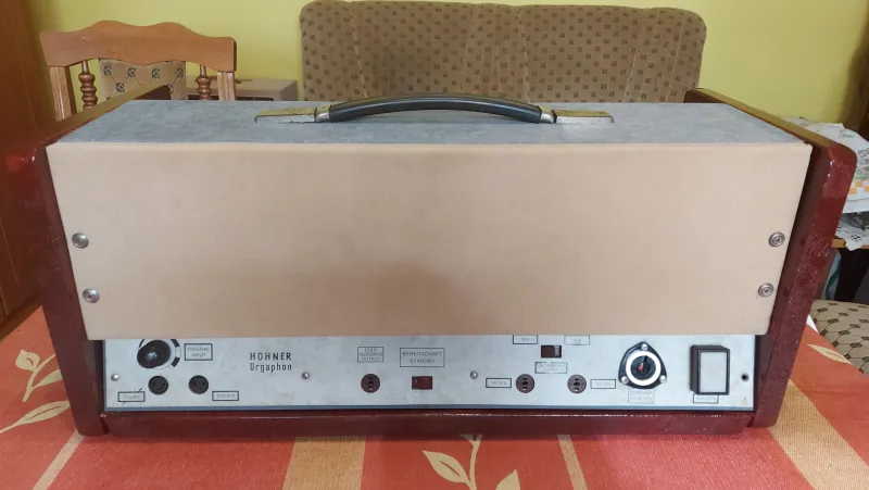 A Hohner Orgaphon 25 MH csöves erősítő az Orgaphon 50 MH alapján új tömörfa dobozban. Az erősítő felújítva, beállítva, minden funkciója hibátlanul működik. Új csőkészlettel: 5x 6N2P-EV,1x Tungstram EF86, 1x AEG ECL86, 2x Polam EL84. Négy független csatorna különböző jelszíntű bemenetekkel. Mind a négy csatornán Volume, Treble, Bass. Csöves vezérlésű rugós zengető, vibrato, Standby. A Hall/reverb mind a négy csatornán külön szabályozható és a vibratohoz hasonlóan lábkapcsolóval kikapcsolható. A reverb és a vibrato hangja valóbanóban látványos. Hangfal kimenete: 16 és 6 Ohm. Az Orgaphon legendás a sokoldalúságáról. Tiszta hang, nagyon szép Blue-os hangkarakterrel. (545x230x240 mm)Doručenie