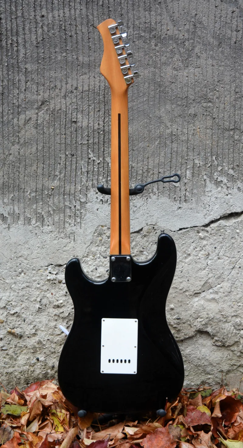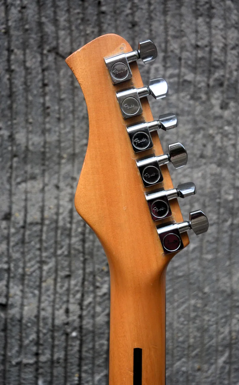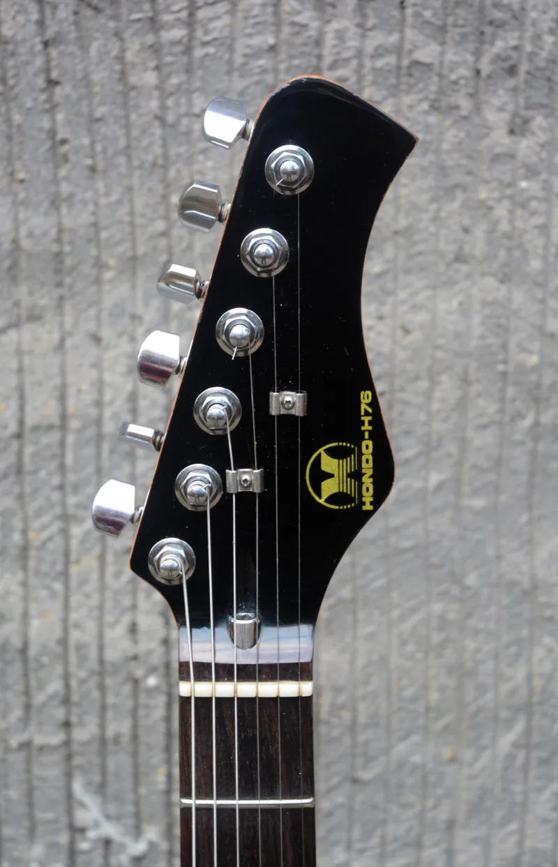 Hondo H-76 Stratocaster, Made in Korea a `80-as évek elejéről. Teljes vastagságú (46 mm) éger test, juhar nyak, még rózsafa fogólap, kitűnő állapotban, nem csak korához képest. A hangolókulcsok Fenderre cserélve, a többi alkatrésze gyári. Nagyon kezes hangszer, igazi vintage hangzás.Prepojená recenzia