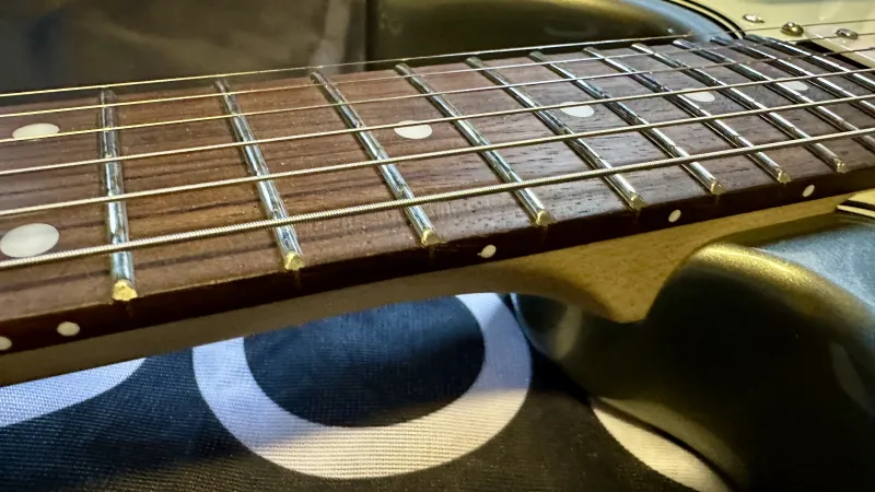 Csavarozott juhar nyak, jatoba fogólap, 22 medium érintő, C nyakprofil, 9,84-es radiusz
