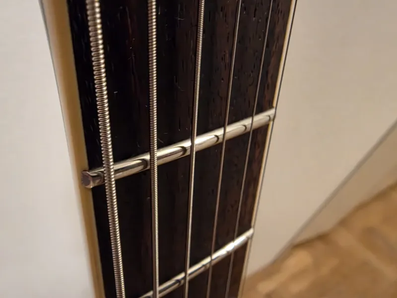 A gitár 2022-ben esett át egy teljes beállításon, újra bundozáson és síkoláson, ekkor kapta a rozsdamentes acél bundokat, amiket jó eséllyel soha az éleben nem kell többet síkolni. A gitár csak szoba gitárként volt használva, így korának megfelelően látszódnak a használat jeleni, de semmilyen komolyabb leverődés nincs rajta. Jelenleg 11-56-os D`Addario NYXL húrokkal C standardre van hangolva a hangszer.
