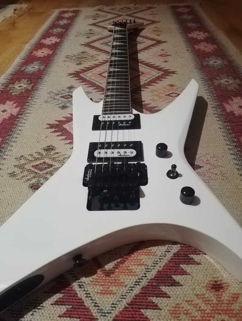 Egy príma állapotú Jackson JS32 Warrior AH Snow White Elektromos gitár várja az új gazdiját! Terepen nem volt, kívácsiságból vettem meg. Aki imádja a formát annak melegen ajánlom! Vattaúj húrok vannak rajta, én thrashre használtam. Alkuképes a dolog, szóval írjatok, hívjatok bátran! :)