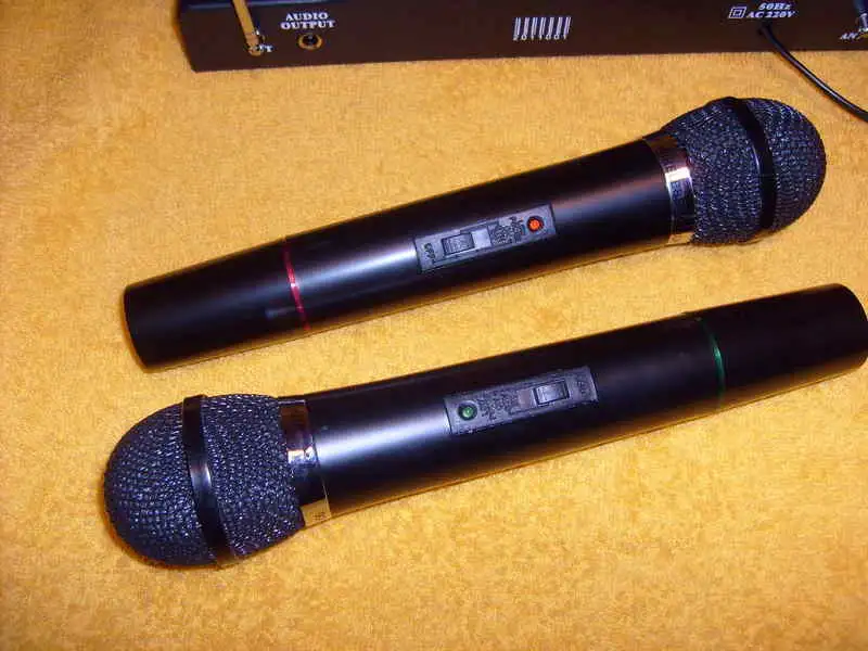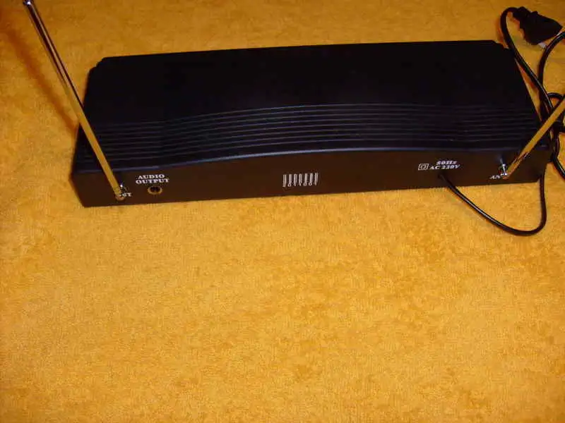 Úplne nový, len vyskúšaný. Funguje bez sekania. Dva mikrofóny + jedna prijímacia jednotka.