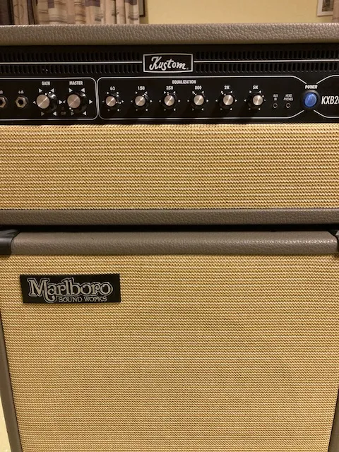 Fej: Kustom KXB200HR 200 Watt, RMS (min. 4 Ohm-on), aktív/passzív bemenet, 6-sávos aktív EQ, effekthurok, szintszabályzós vonalkimenet, 3.5 mm-es sztereó kimenet, 3.5 mm-es Aux bemenet, 2 x 6.3˝ hangszóró csatlakozó.