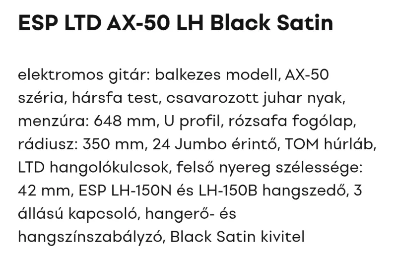 LTD ESP AX50 LH SATIN BLACK ľavá elektrická gitara