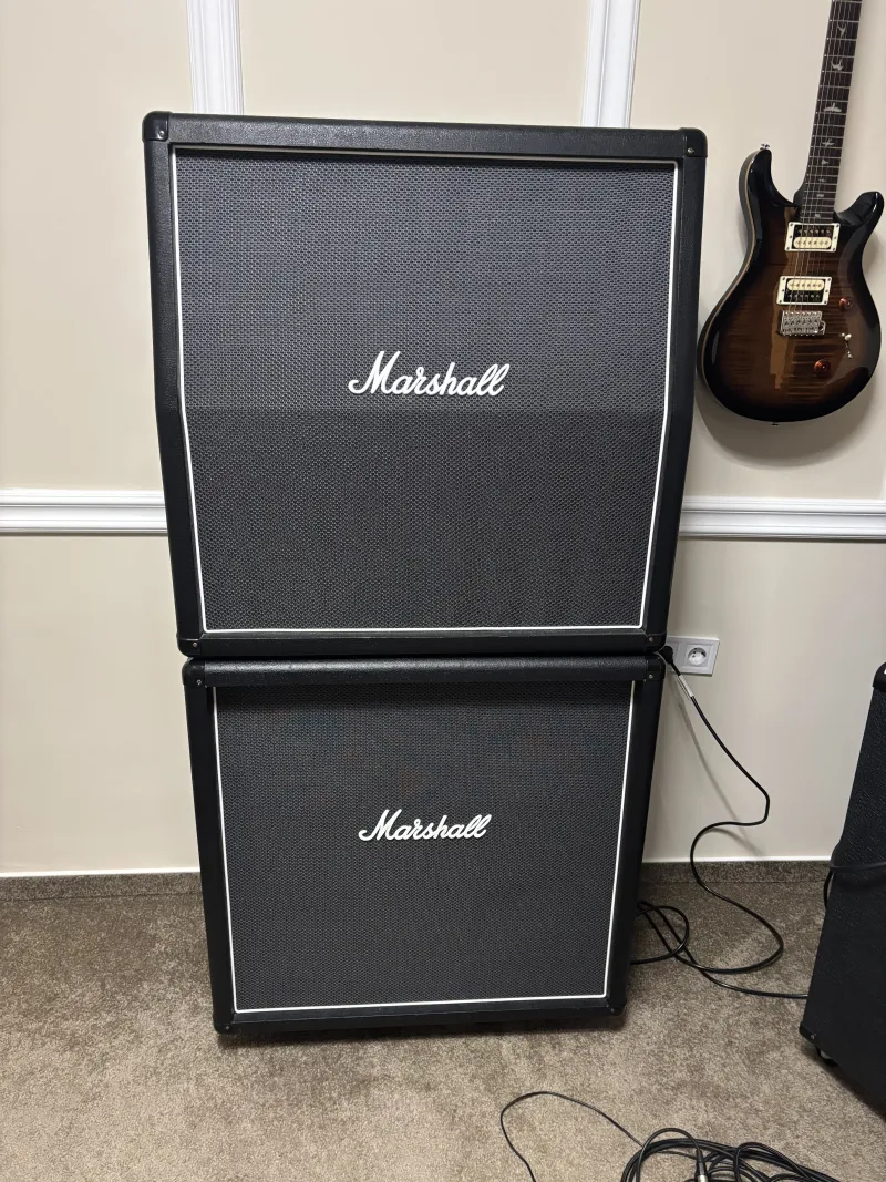 Eladó ez a pár gitárláda kifogástalan állapotban az eredeti Marshall Eminence AX-75-ös hangszórókkal.Mindene gyári. Az ár, a 2db ládára értendő.