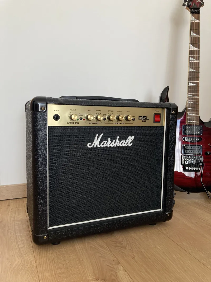 Eladó egy Marshall DSL 5 típusú full csöves erősítő. Keveset használt, szép megkímélt állapotban. Csövek teljesen jó állapotúak. 5 Wattos és 1 Wattos kapcsolási lehetőség.Az 5 Wattos teljesítmény senkit ne tévesszen meg, mivel csöves erősítő esetében ez többszöröse a tranzisztoroséhoz képest. Én szobában használtam, és az 1 Wattos csökkentett mód harmadáig tekertem a hangerőt, de már az is hangos volt.