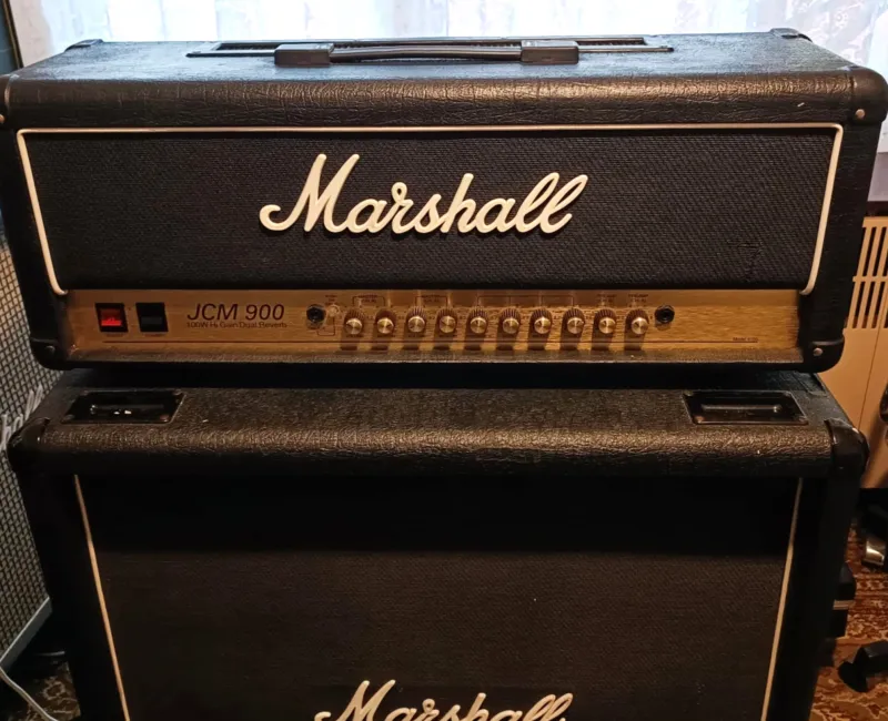 Eladó a képeken látható gyári állapotú, hibátlanul működő Marshall JCM900 Hi Gain Dual Reverb 4100 fullcsöves gitárerősítő fej.Minőségi előfokcsövek, új állapotú válogatott RUBY végfokcsövek..
