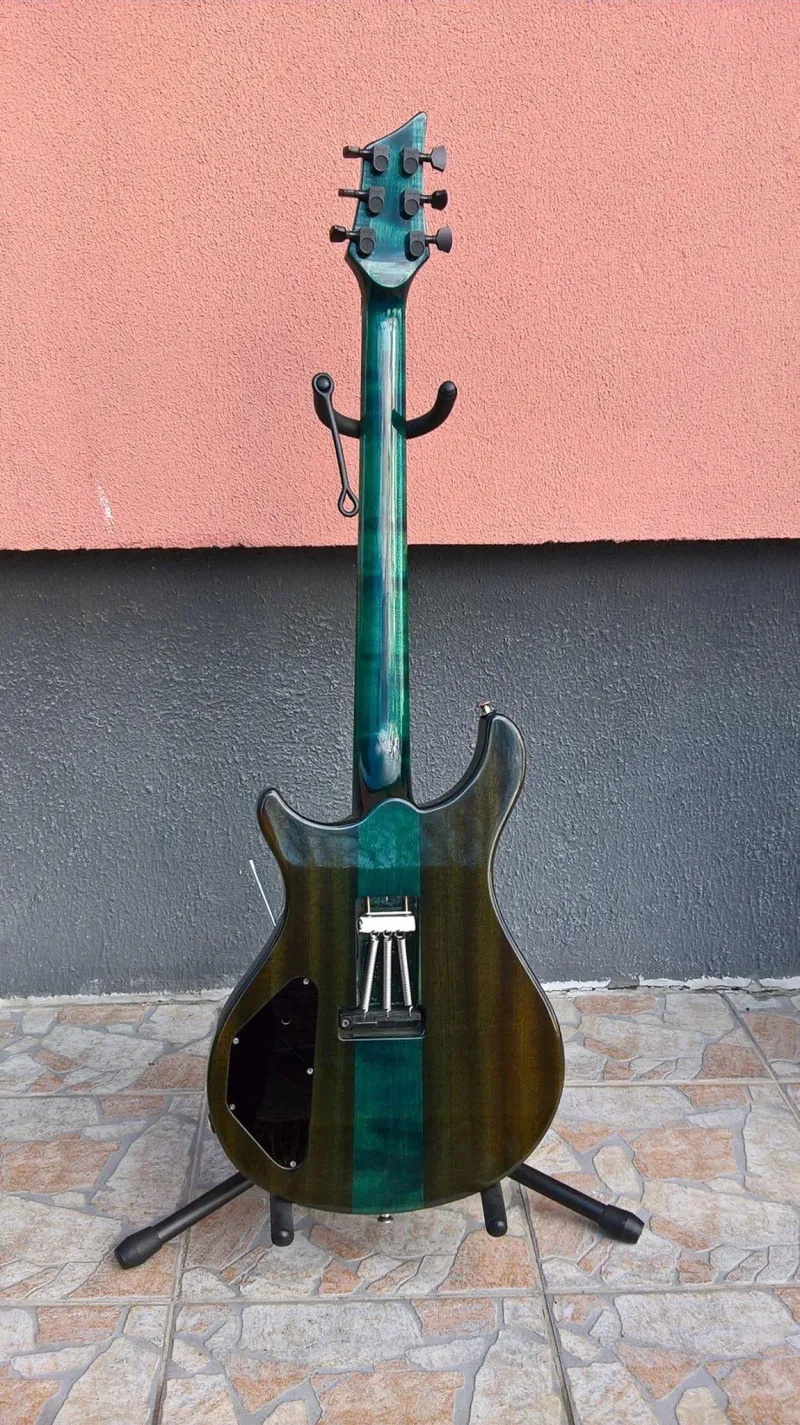 Ez nem egy sorozatgyártott gitár, hanem egy egyedi, megismételhetetlen kézműves hangszer, amely egyszerre szolgálhat zenészt, gyűjtőt vagy akár kiállítási darabot.