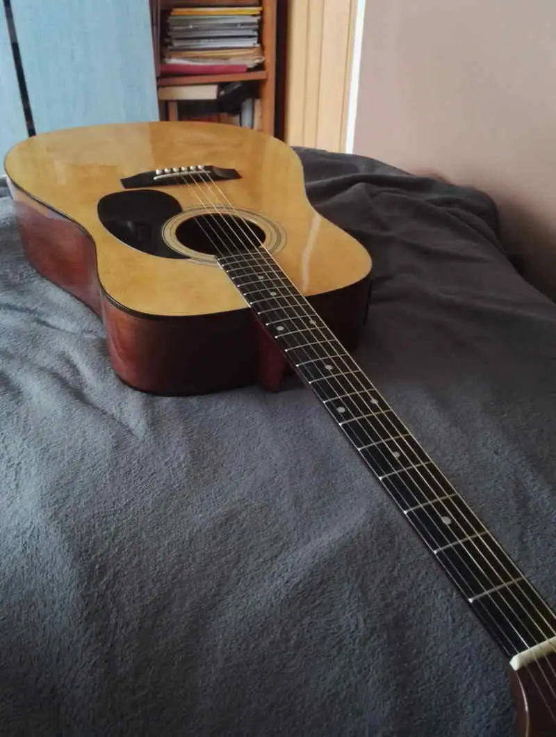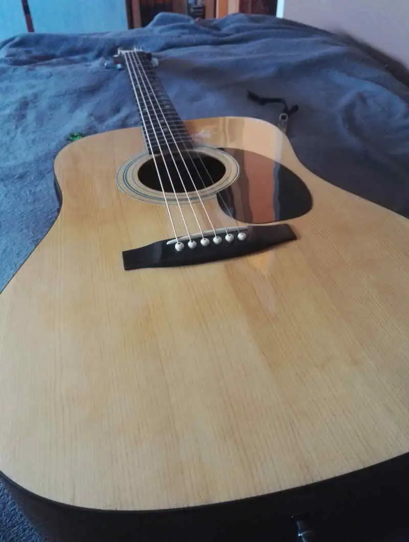 huendeskesNa predaj z nedostatku času je skutočný malý klenot. Čerstvo navlečené struny Martin! Znie krásne, perfektná voľba aj pre začiatočníkov, ktorí nechcú minúť majland na novú gitaru. Na zadnej a prednej strane sú škrabance a zadná strana bola poškodená, ale bola opravená, čo vôbec neovplyvňuje zvuk! Veľmi pohodlný hmatník, naozaj radosť na ňom hrať. Ľahko konkuruje základným gitarám od Cort, Fender, Epiphone a myslím si, že je dokonca lepšia.