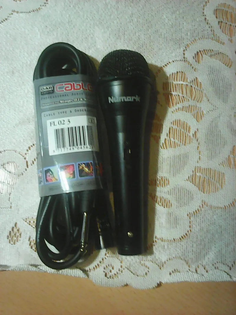 Használatlan állapotban, szólóénekre alkalmas dinamikus mikrofon. Kapcsolóval, kábellel.
