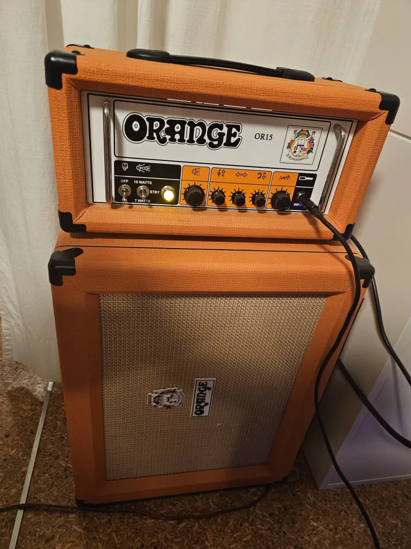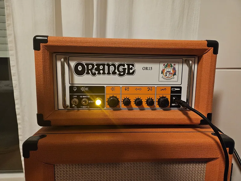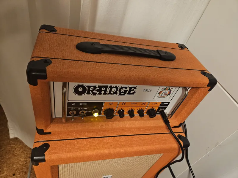 Eladóvá vált OR15 fullcsöves fej. Nagyon szép, megkímélt állapot, tipikus brit ˝orange˝ hang. Mostanra bátran nevezhető kultikus darabnak ez a típus is, szinte ódákat zengenek róla a fórumokon.15 watt teljesítmény (elég dob mellé is), ami visszavehető 7 wattra. 2 db EL84 végfokcső, 3 db 12AX7 előfokcső, az effekt loop szintén csöves meghajtású (12AT7), ami stabil jelillesztést és gyönyörű tiszta modulációs/reverb használatot nyújt.