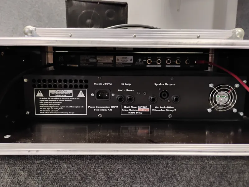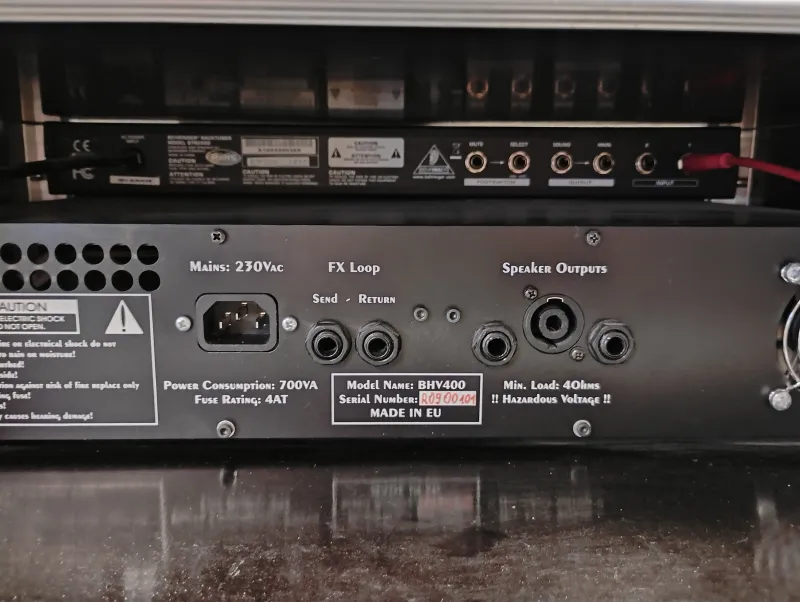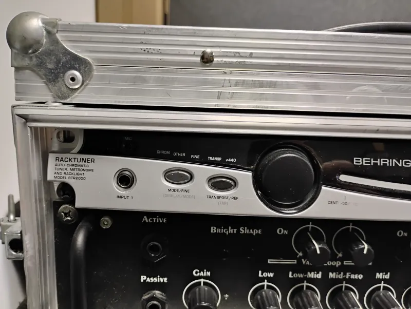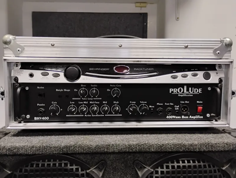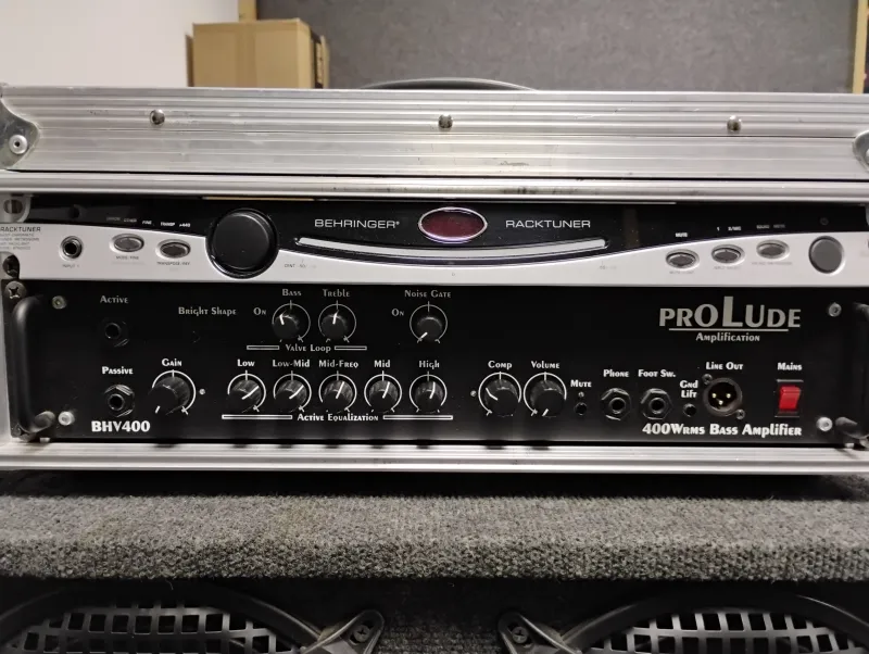 Prolude BHV 400 előfokcsöves fej, 3U-s rackben. A Behringer tuner jár a fejhez.