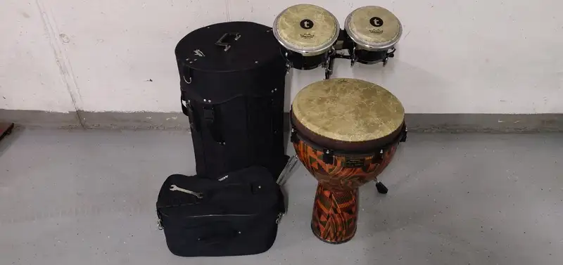 Harmónikusan együttműködő Thomann Latin Expert bongo is vásárolható hozzá, tokkal, állvánnyal, szintén Remo fyberskin bőrökkel, plusz 35.000. ft.-ért.