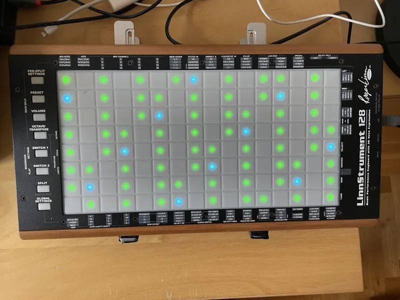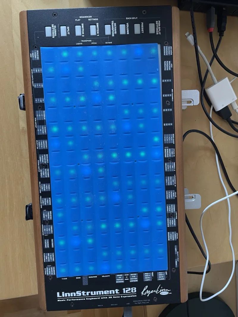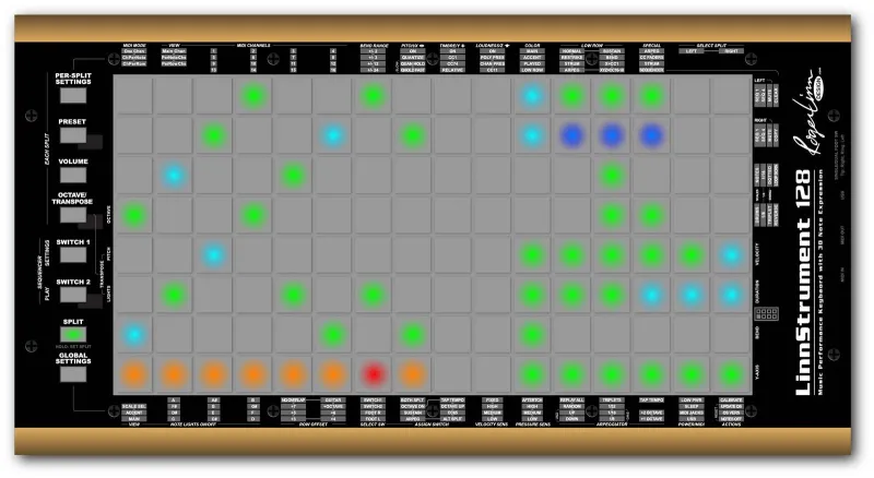 LinnStrument 128 MIDI MPE kontroller - tökéletes állapotbanA legendás tervező, Roger Linn, MIDI-hangszer egyesíti a gitár és a billentyűs hangszerek lehetőségeit. 128 kivilágított billentyűje a sebességre, a nyomásra és 4 irányú nyomásra (MPE vezérlés) is érzékeny.