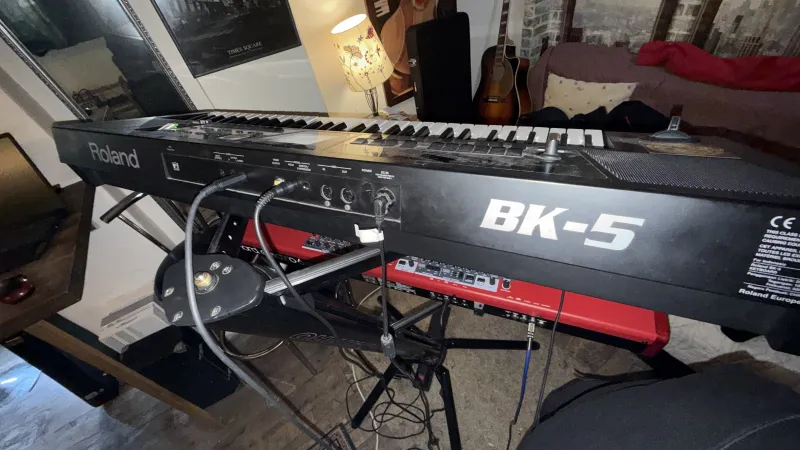 Eladó a képeken látható Roland BK-5 kíseretautomatikás szintetizátor. Használt de jó állapotú, működő. Jár hozzá gyári Roland gurulós puhatok, tápegység, ráhelyezhető kottatartó. Csak személyes átvétellel, nem postázom!Prepojená recenzia
